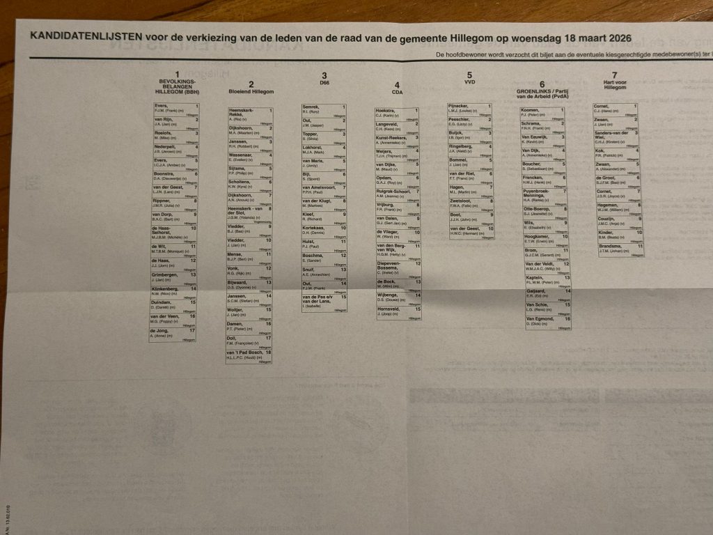 Hillegom – De Hillegommers mochten vandaag naar de stembus om te kiezen voor de gemeenteraad. In deze liveblog houden we u op de hoogte van de uitslagen en ander nieuws tijdens de uitslagenavond. Einde liveblog 00.00 uur Morgen wordt er in sporthal De Vosse verder geteld. Dan komt er in de middag de uitslag op kandidaatniveau. Het kan altijd dat er nog mensen in de raad komen door voorkeursstemmen. Update 23.43 uur Op alle stembureaus zijn de stemmen geteld. BBH is de enige partij die hetzelfde aantal zetels houdt. Alle andere partijen hebben of 1 zetel verloren (Bloeiend Hillegom, CDA, VVD) of hebben 1 zetel gewonnen (D66, GroenlinksPvdA en Hart voor Hillegom). BBH heeft 2 restzetels, Bloeiend Hillegom 1 restzetel en GroenlinksPvdA 1 restzetel. Het aantal stemmen is als volgt: BBH 3770 (8 zetels)D66 1707 (3 zetels) Hart voor Hillegom 1206 (2 zetels)Bloeiend Hillegom 1049 (2 zetels)GroenlinksPvdA 947 (2 zetels)CDA 895 (1 zetel)VVD 874 (1 zetel) Update 23.22 uur Ook Burgemeester...