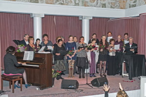 Veel tevreden en trotse gezichten tijdens het concert van ‘Belle Voci’ op 23 november jl. in theater Het Raam in Hillegom. Voor een uitverkochte zaal lieten twintig zangliefhebbers horen wat zij op vocaal gebied in huis hebben.