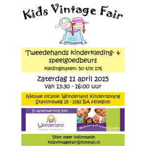 Na een jaar van afwezigheid vindt op zaterdag 11 april de Kids Vintage Fair plaats; een kinderkleding- en speelgoedbeurs van en voor ouders. De Kids Vintage Fair vindt dit jaar heel toepasselijk plaats bij Wonderland Kinderopvang aan de Stationsweg 25 in Hillegom.