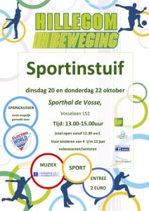 Hillegom – Nog een week en dan is het zover! Dan is het namelijk herfstvakantie en kan je twee middagen meedoen met de sportinstuif. Of je nu tussen de 4 en de 15 jaar bent of al wat ouder (volwassenen en senioren) je bent van harte welkom. Voor ieder wat wils op dinsdag en donderdag tussen 13.00-15.00 uur. De sportinstuif is in ‘de Vosse’ (Vosselaan 152, 2181 CD Hillegom) en de zaal is open vanaf 12.30 uur. De entree is 2 euro per persoon per dag. Kom en doe mee!