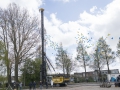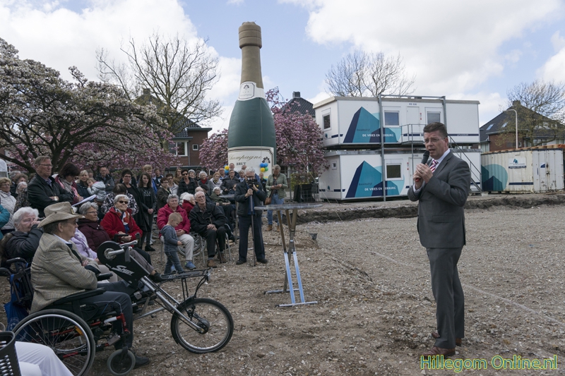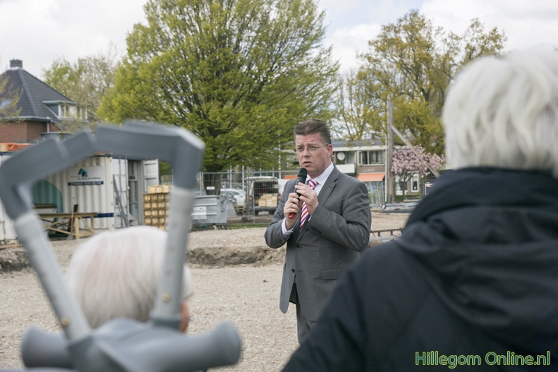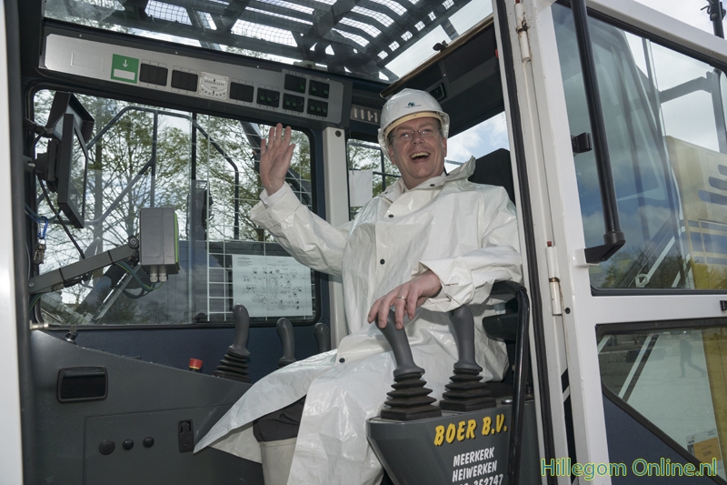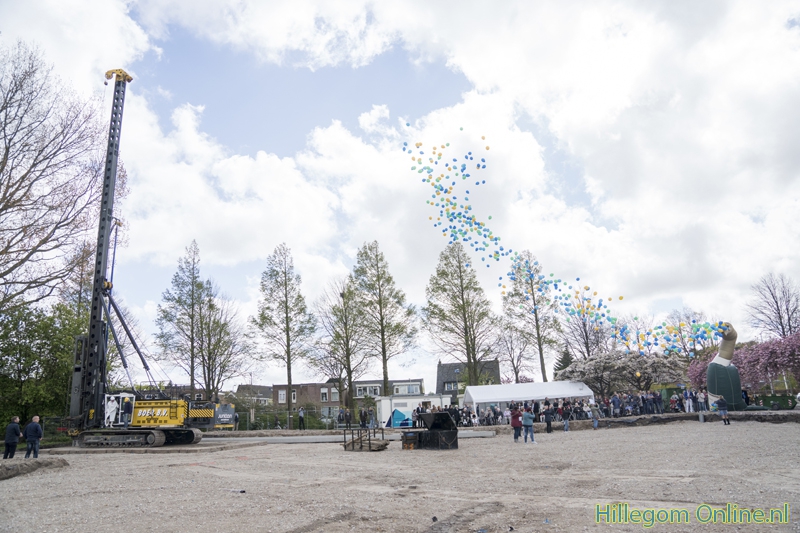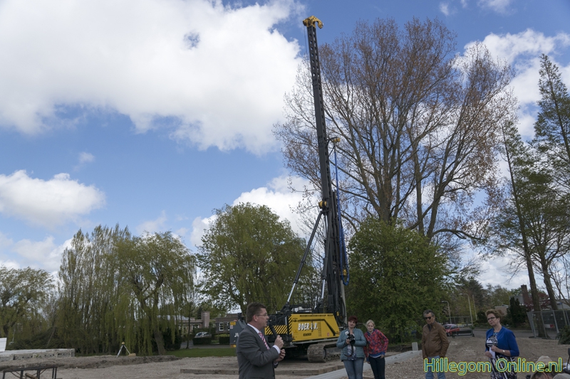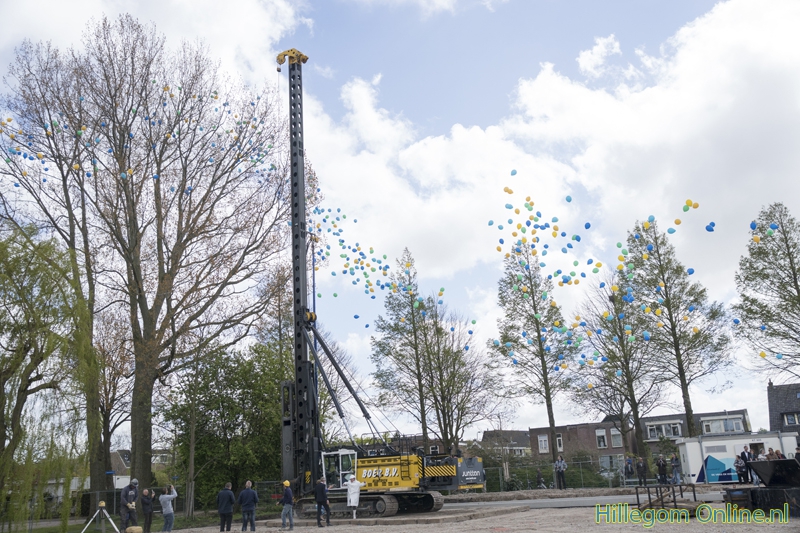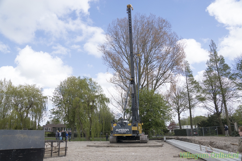 Hillegom – De heimachine kwam vlak voor de plechtigheid aan, maar kon gelukkig de eerste paal voor de nieuwbouw van Parkwijk de grond in slaan. Op 3 mei kwamen bewoners en omwonende naar het bouwterrein. Na een praatje van mevrouw Joke Ricke, Directeur-bestuurder HOZO, en wethouder Jeroen Verheijen mocht de eerste paal de grond in.