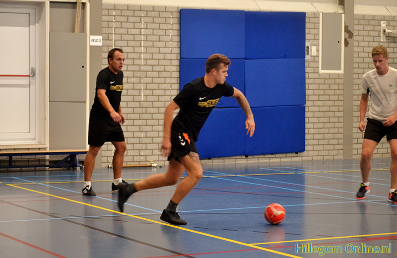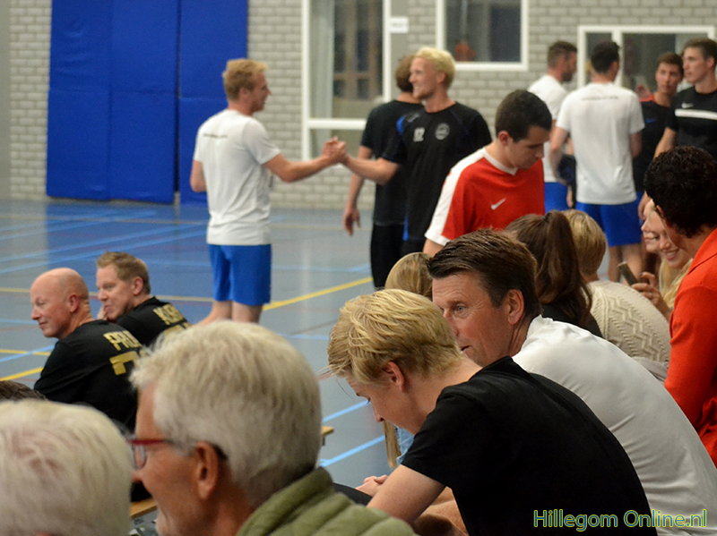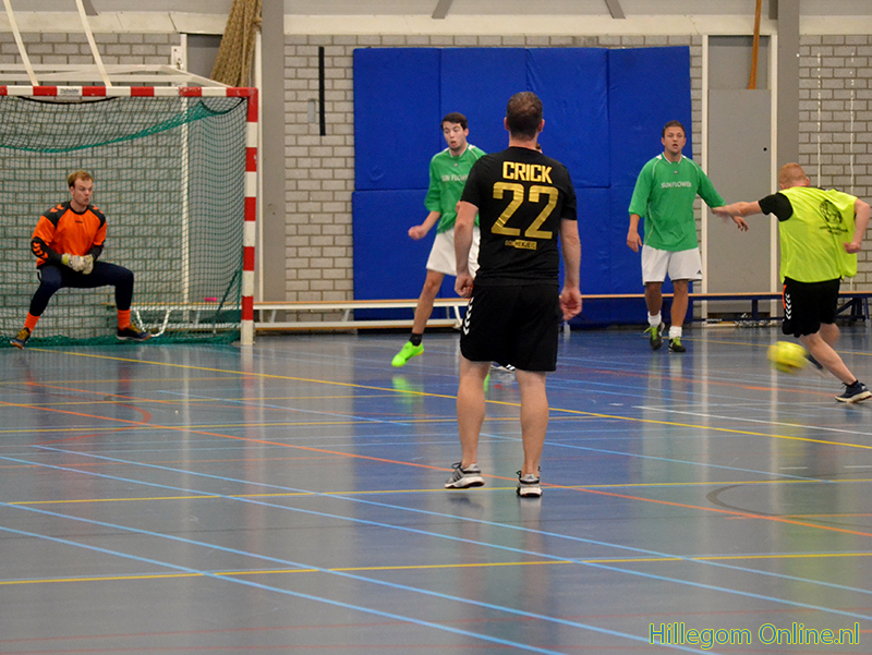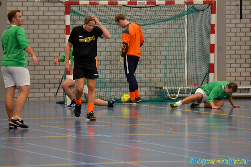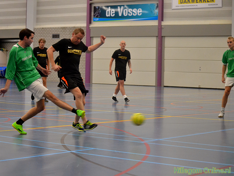 Die avond was het zaalvoetbaltoernooi voor mannen. Er werd fanatiek maar sportief gespeeld.