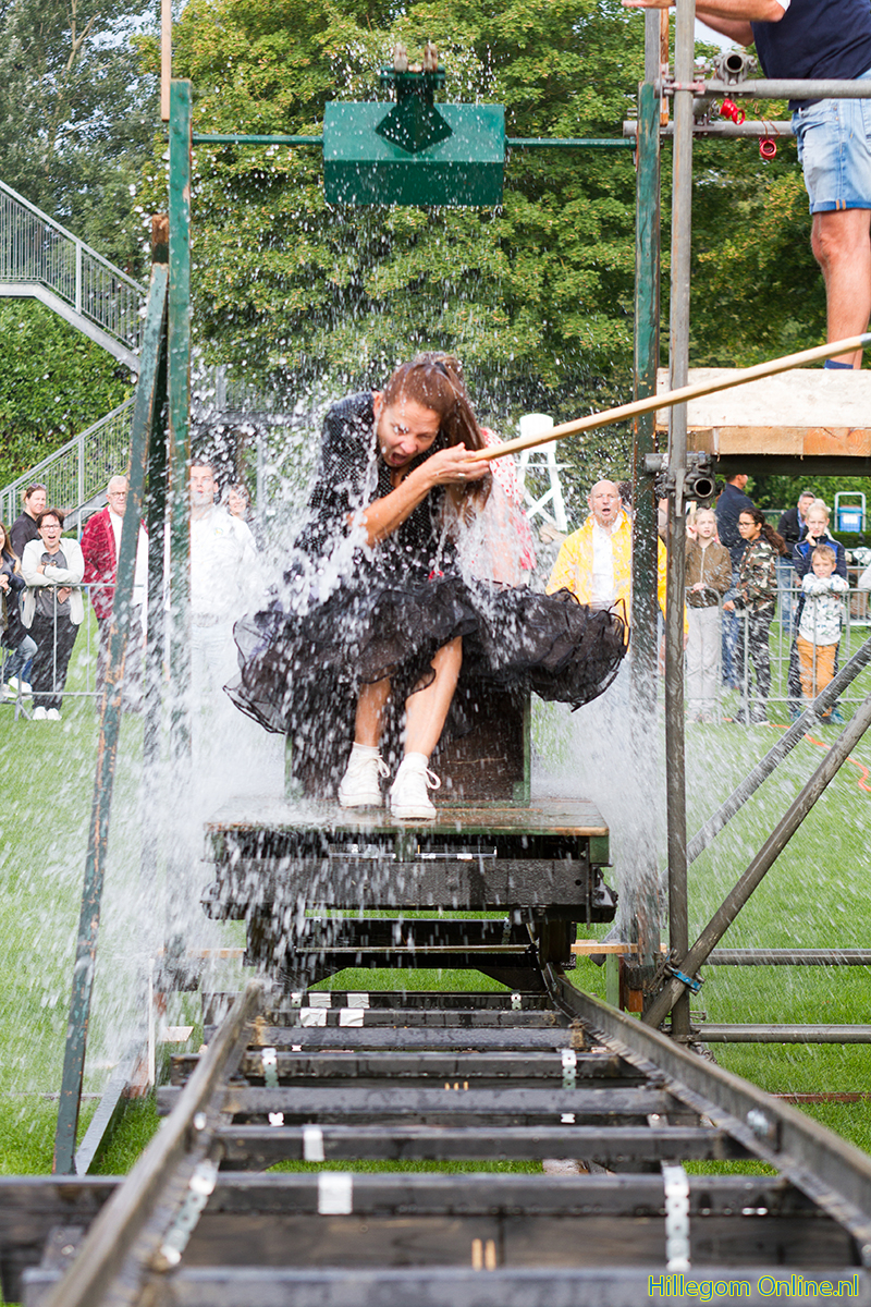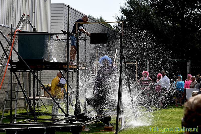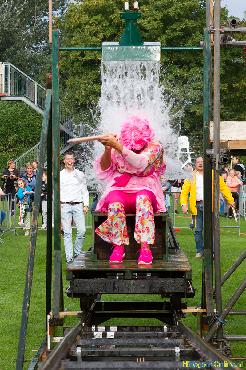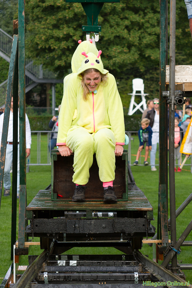De deelnemers namen samen plaats op het karretje, ontvingen een duwtje en roetsj op de rail naar de andere kant. Met een puntstok probeerden zij door een ring te prikken. Helaas lukte dit niet altijd en kreeg de partner een nat pak.