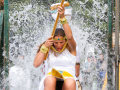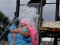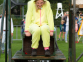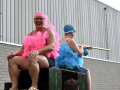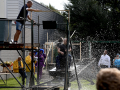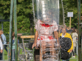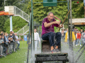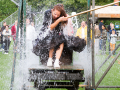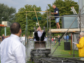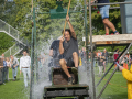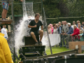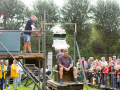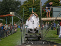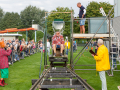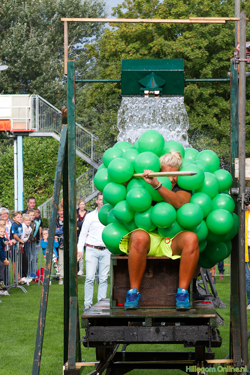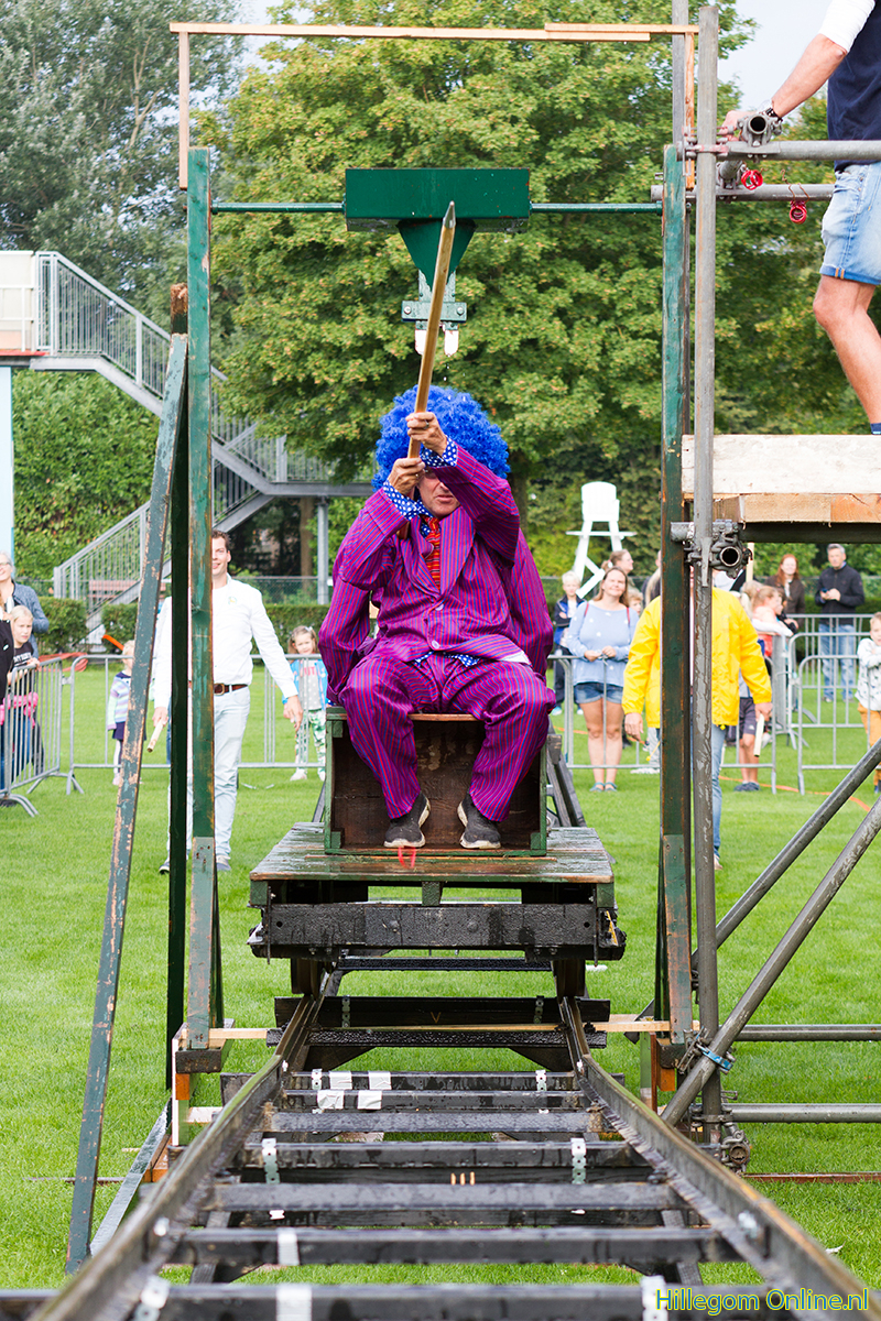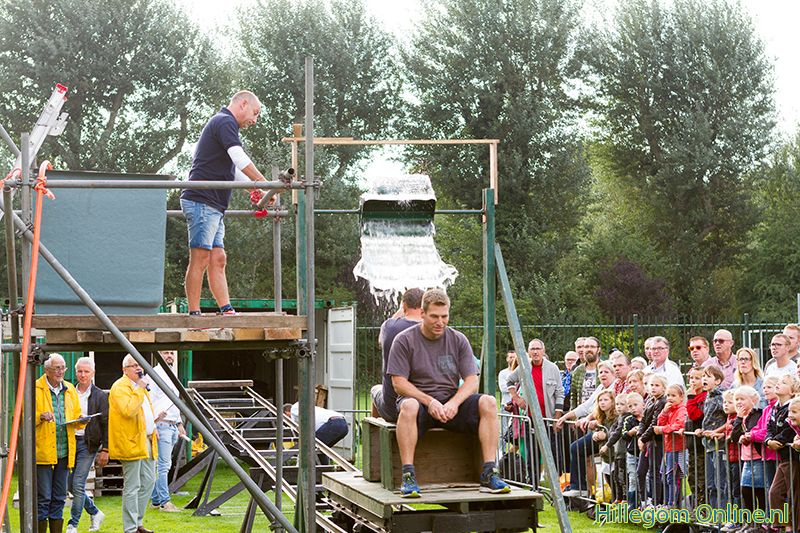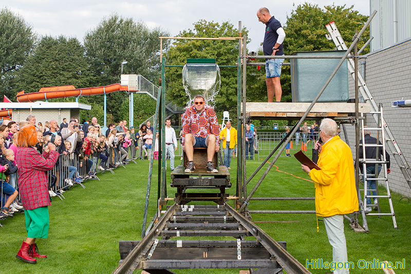 De deelnemers namen samen plaats op het karretje, ontvingen een duwtje en roetsj op de rail naar de andere kant. Met een puntstok probeerden zij door een ring te prikken. Helaas lukte dit niet altijd en kreeg de partner een nat pak.