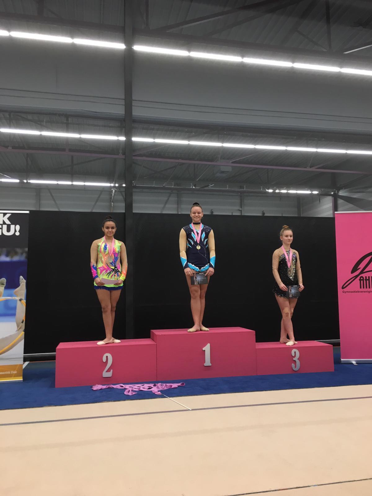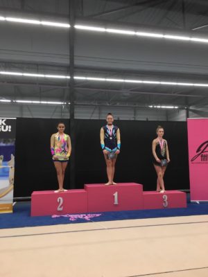 Hillegom – Zondag 9 december organiseerde de ritmische afdeling van Jahn Hillegom de 1e plaatsingswedstrijd 2e divisie Ritmisch Gymnastiek van dit seizoen. Alle verenigingen uit district Zuidwest waren vertegenwoordigd. Ook van Jahn Hillegom deed een groot aantal gymnasten mee. Voor sommige meiden was het spannend omdat het voor hen de allereerste wedstrijd was en voor anderen de eerste wedstrijd van dit seizoen. Iga Wojtysiak (8) belande met haar hoepel- en baloefening nét naast het podium op de 4e plaats. Indi Koelers (10) mocht de bronzen medaille mee naar huis nemen. Lujain Elmahdadi (13) verdiende met haar zeer mooi uitgevoerde hoepeloefening een zilveren medaille. Tot slot bewees Sanne Breij (17) dat hard werken beloond wordt, ook zij eindigde op de 2e plaats. Hoewel niet alle Jahn meiden een medaille wonnen, was en is Jahn Hillegom supertrots op ál haar gymnasten!
