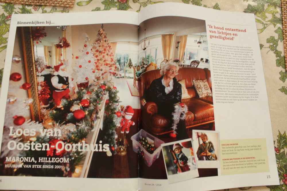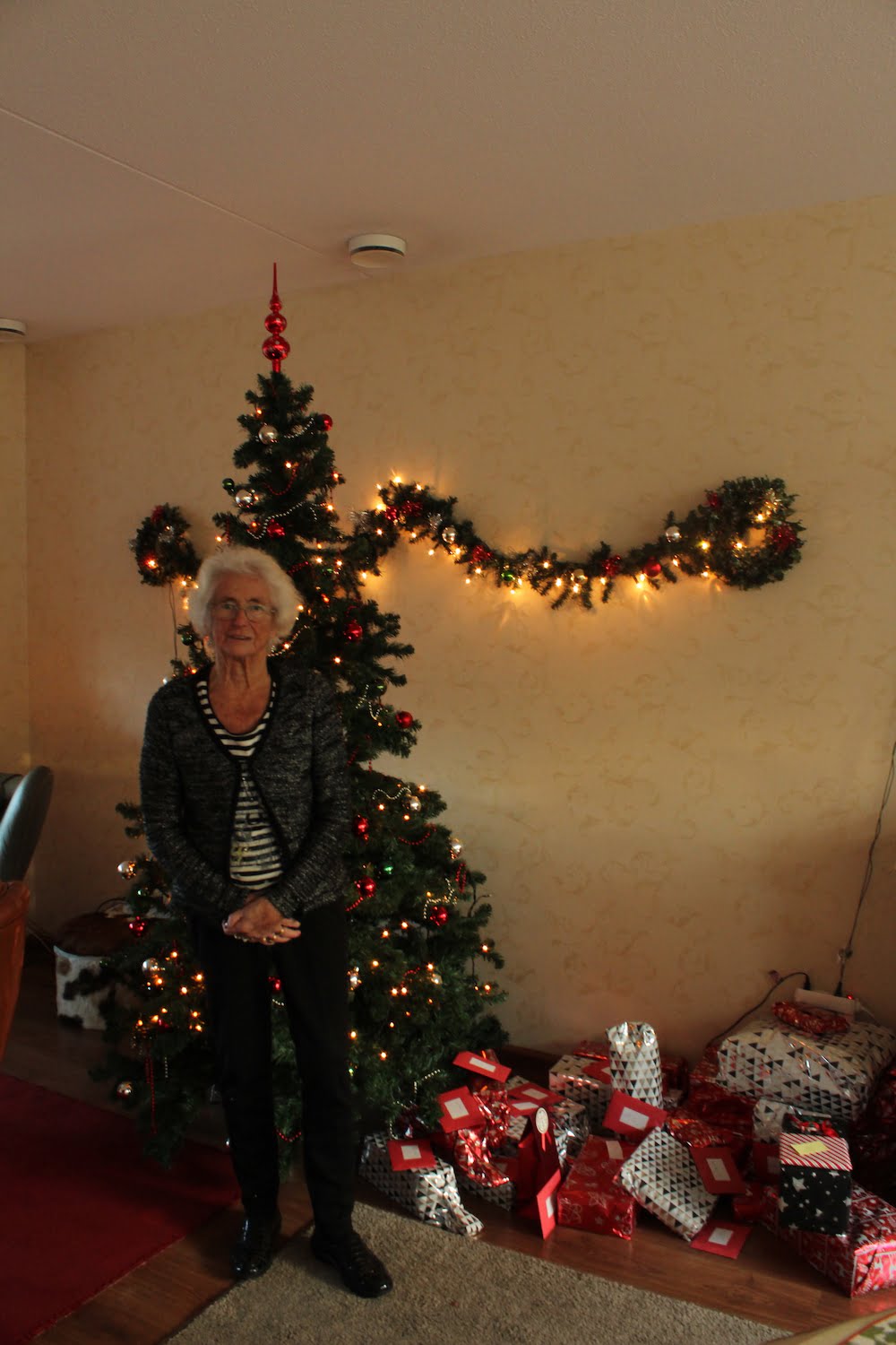 Mooie, nette kleding en kadootjes horen daar zeker bij volgens mevrouw (ik liet haar toen even mijn kerstbal oorbellen zien). Mevrouw van Oosten-Oorthuis versiert haar huis regelmatig in een ander thema. Dit jaar is dat met groene, rode en zilveren ballen.