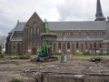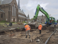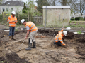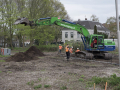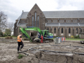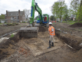 Hillegom – De eerste opgraving op 18 april aan de Van den Endelaan heeft niet veel opgeleverd. Er liggen enkelen geglazuurde stenen in de fundering dat duit op hergebruik zo denken de archeologen. Zij denken dat  omdat het te duren stenen zijn voor een fundering maar alles wordt nog verder onderzocht.
