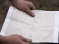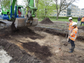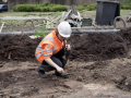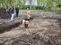De meetstokken geven de lengte en hoogte aan van het geen ze opgraven Er is wat aardewerk, potten scherven opgegraven ze gaan dat nog wel nader onderzoeken.