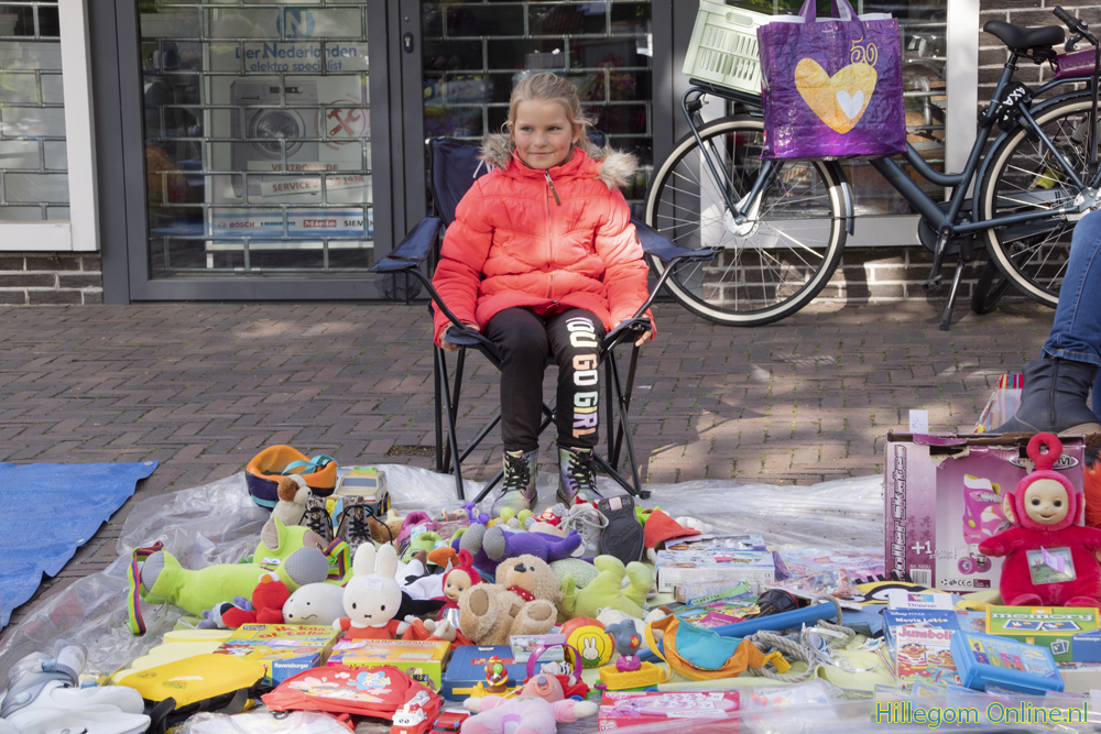 Hillegom – Het dorp lag bezaaid met kleden en mooi uitgestalde spullen. De jaarlijkse vrijmarkt trok weer veel bezoekers. Ondanks het wat tegenvallende weer was het goed druk. Er waren veel kinderen die hun koopwaren aanprezen.