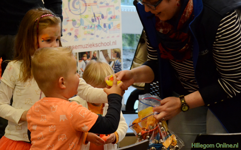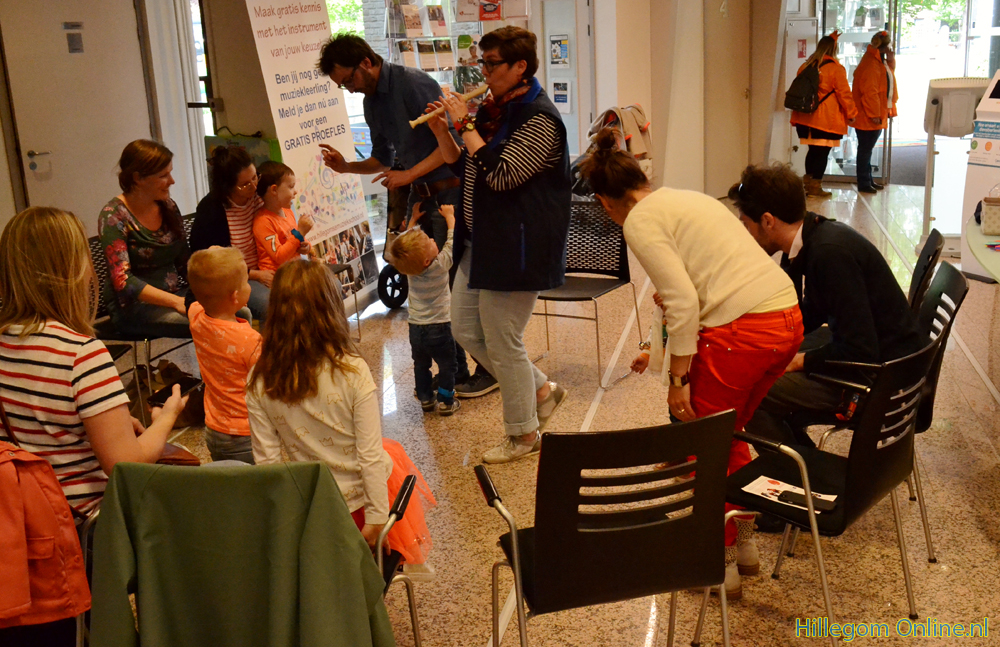 Hillegom – De Muziekschool bood op Koningsdag 2 verschillende workshop aan. Er was een workshop “muziek voor Peuters” en een workshop “probeer een instrument”. Beide workshop werden goed bezocht.