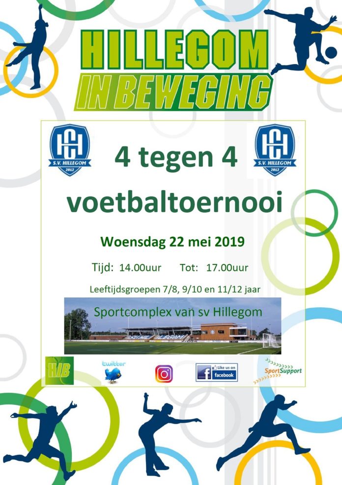 Hillegom – Op het complex van SV Hillegom vindt woensdag 22 mei tussen 14.00 en 17.00 uur een 4 tegen 4 voetbal scholentoernooi plaats. De organisatie van het voetbaltoernooi is in handen van Team Hillegom in Beweging (Buurtsportcoaches) en SV Hillegom. Vorig jaar waren er 52 teams die meededen en het beloofd een waar spektakel te worden.