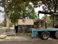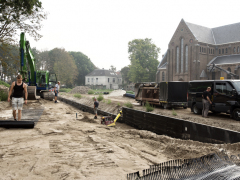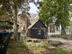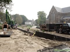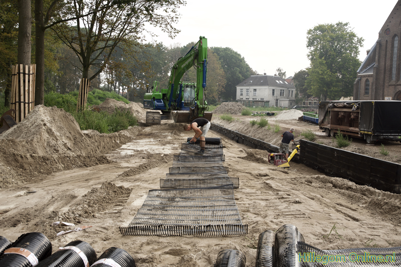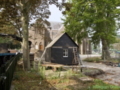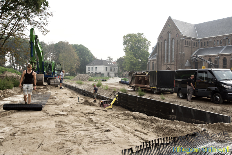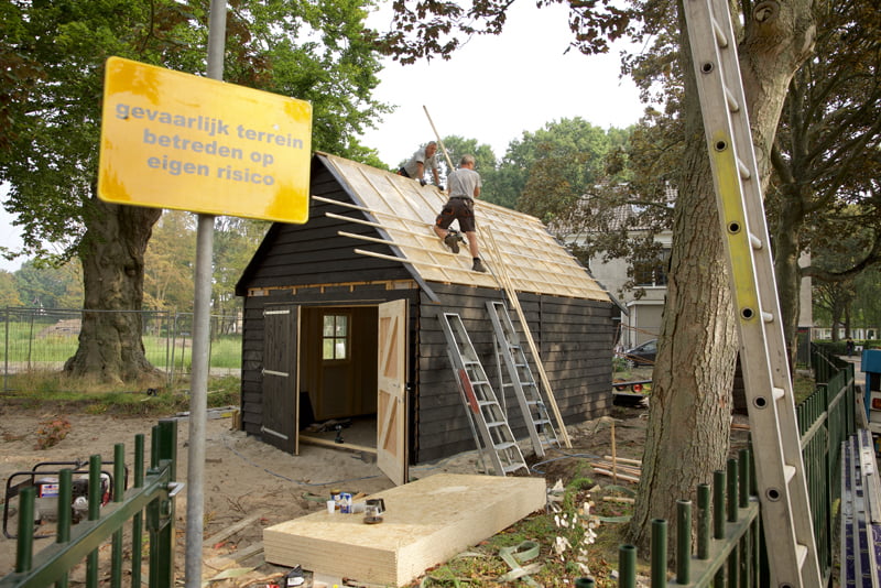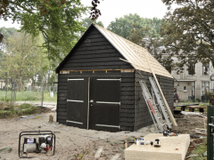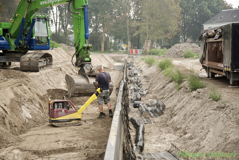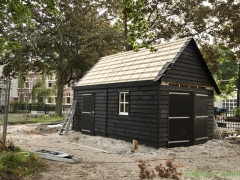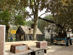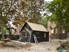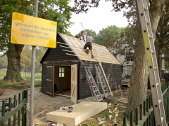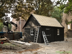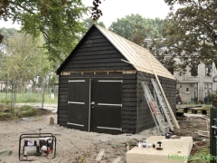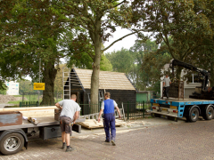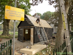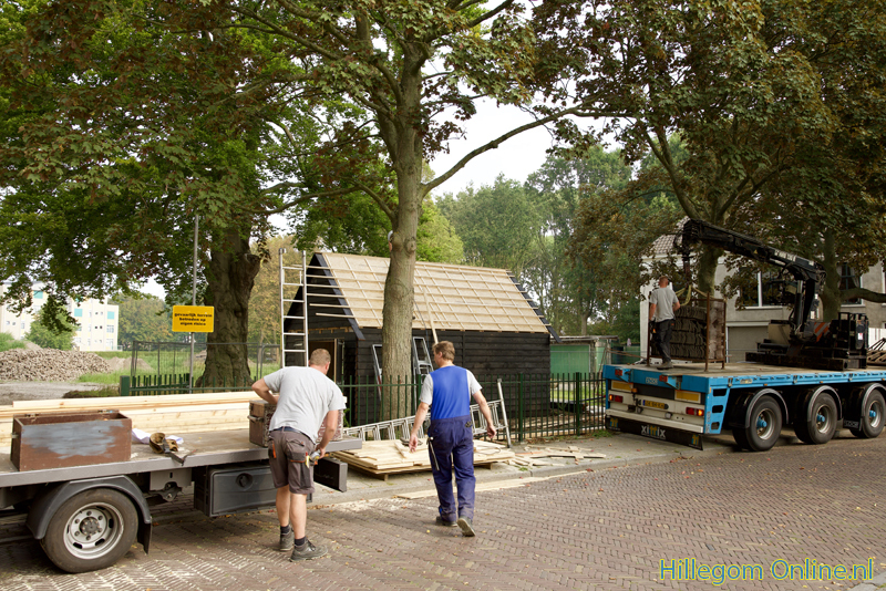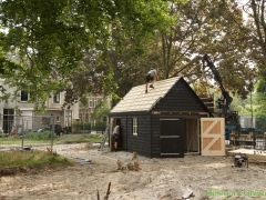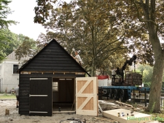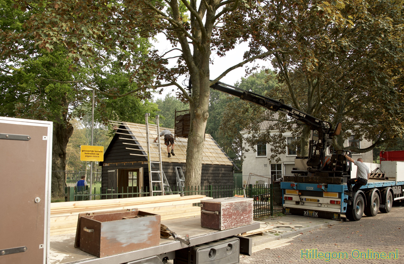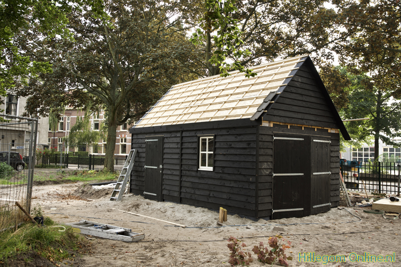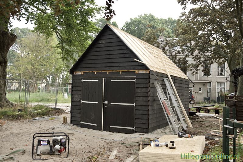 Hillegom – Voor de werkzaamheden moest er een schuurtje plaats maken. Gelukkig voor de eigenaar werd er later weer een nieuw schuurtje geplaatst. Ook de andere werkzaamheden in het park gingen gewoon door om alles op tijd af te hebben.