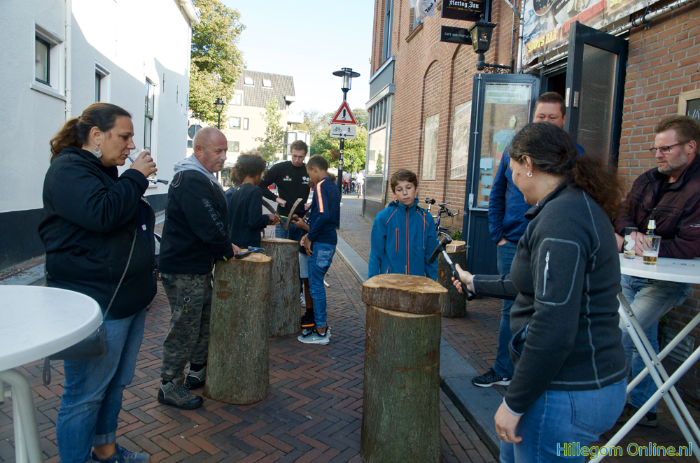 Hillegom – Zondagmiddag konden de Hillegommers hun handigheid laten zien bij spijkerslaan. Bij Cafe Puntje Puntje stond een stuk hout klaar waar de spijkers ingeslagen moesten worden.