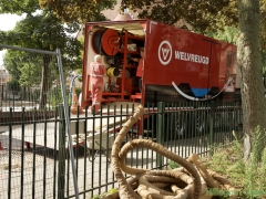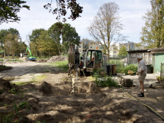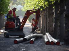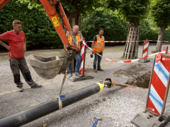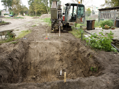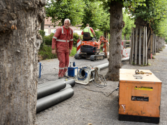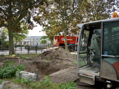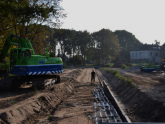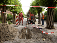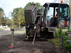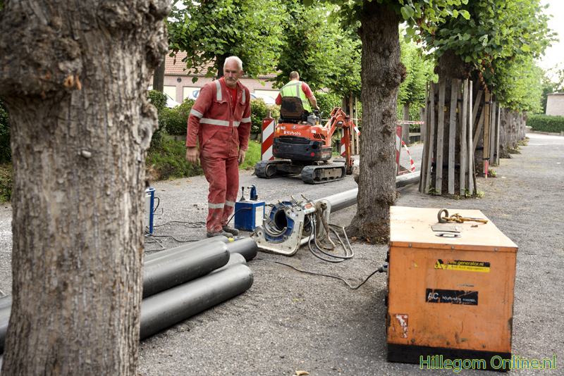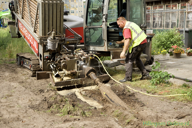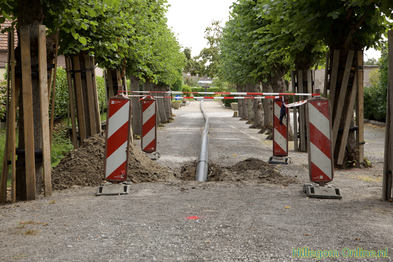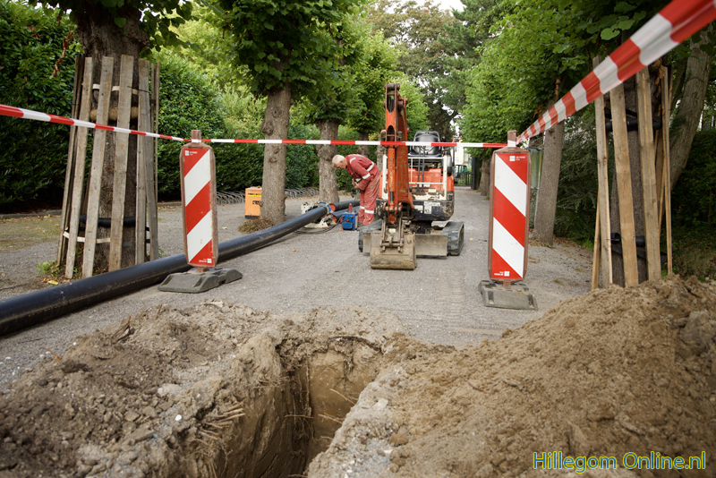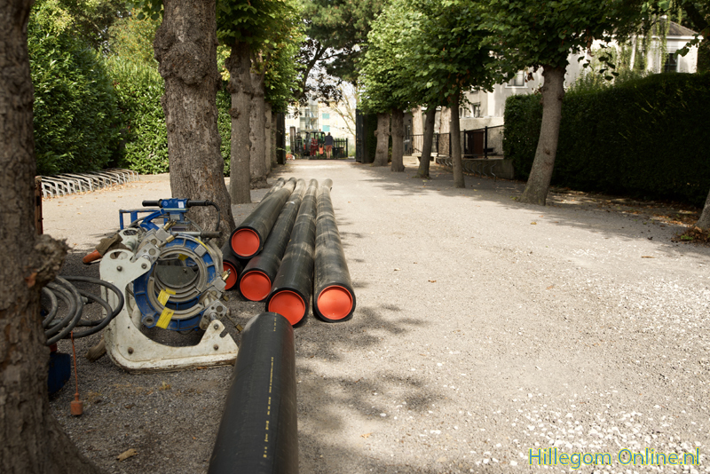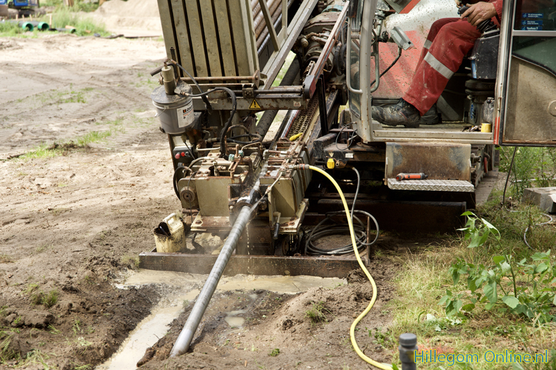 Hillegom – Om de verschillende waters met elkaar te verbinden zijn er buizen aan gelegd. Deze zijn doormiddel van boringen onder de weg door gelegd. Het water rondom de begraafplaats staat straks in contact met het water in het Van Nispenpark en dat staat weer in verbinding met het water rond het Fioretti College. Uiteindelijk staat het zelfs in contact met de ringvaart.