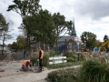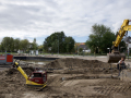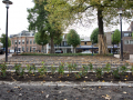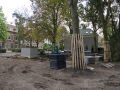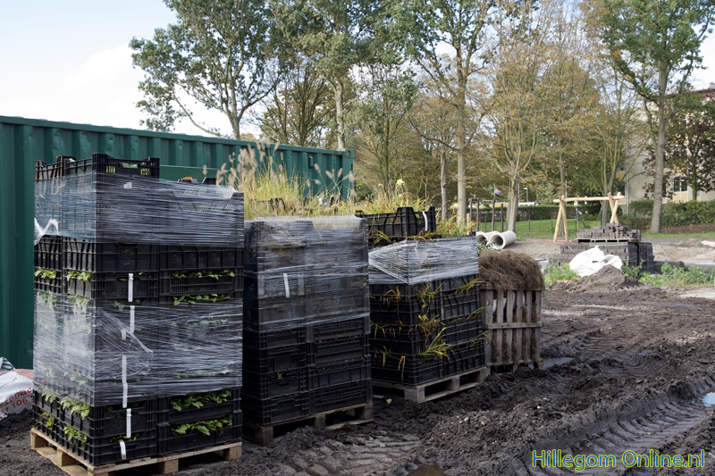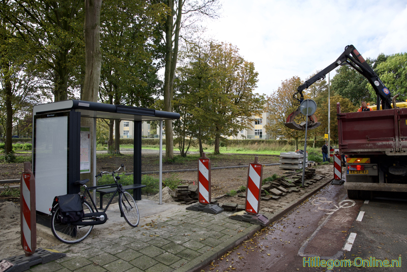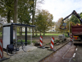 Er wordt nu ook begonnen met het planten van de beplanting en vandaag werd ook het bushokje aan de Irenelaan neergezet.