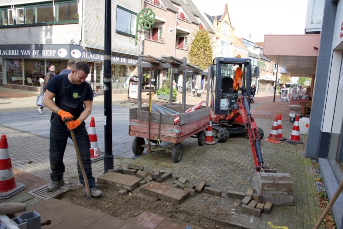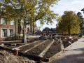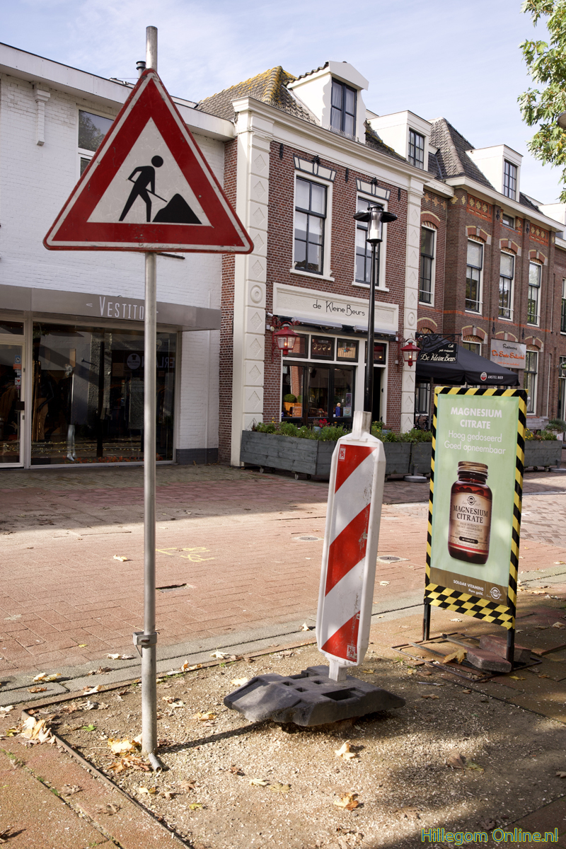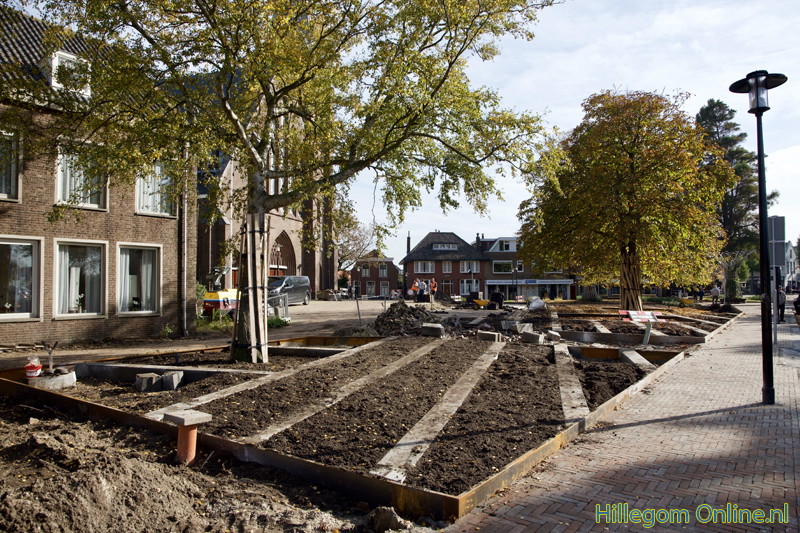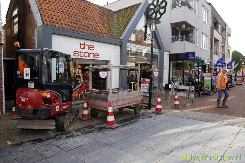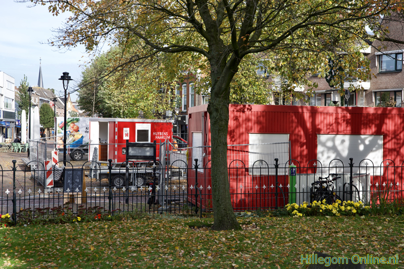 Hillegom – Er wordt nu begonnen met de werkzaamheden aan de laatste deel van de hoofdstraat. De bomen die weg moesten zijn weggehaald en de bouwketen zijn geplaatst.