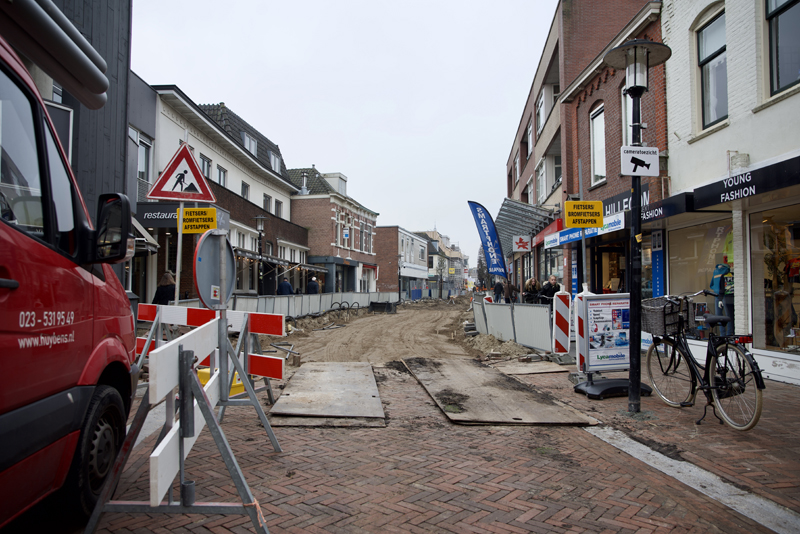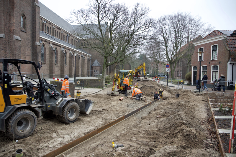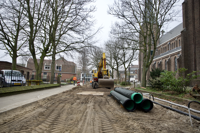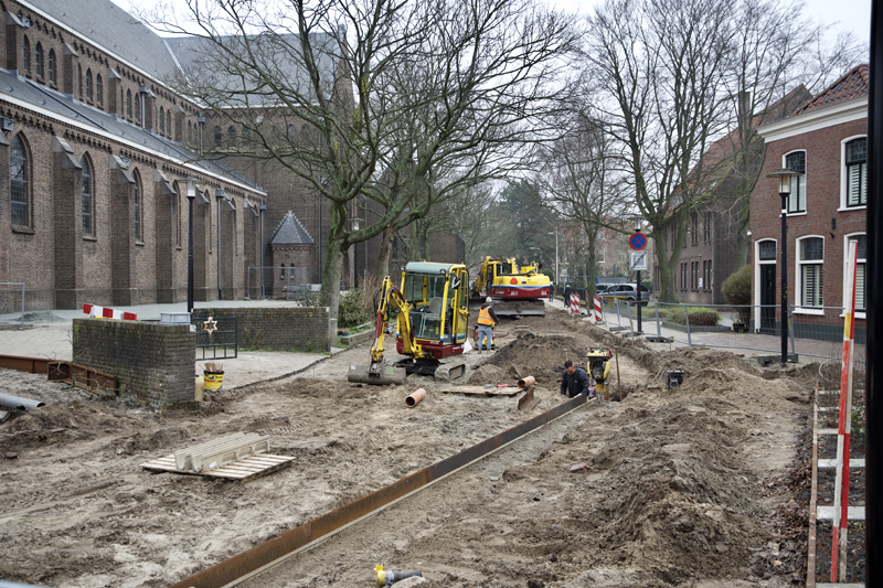 Hillegom – Al vele maanden wordt er aan het Van Nispenpark gewerkt. Nu komt de opening van 4 april steeds meer inzicht en het park krijgt nu ook steeds meer vorm. De werkzaamheden aan de Hoofdstraat gaan nu ook hard. Het doel is om voor de bloemencorso de Hoofdstraat weer begaanbaar te hebben.