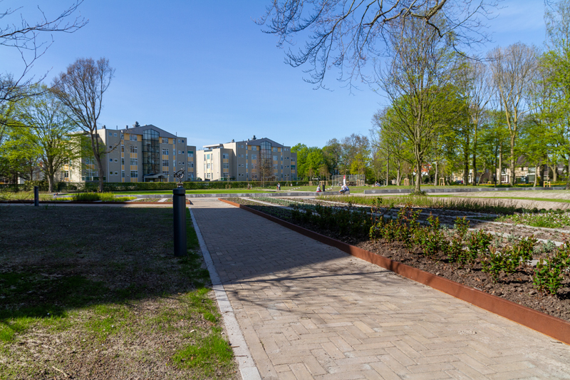 Hillegom – De laatste werkzaamheden worden nog gedaan aan het Van Nispenpark, maar het park wordt al volop gebruikt. Zeker op warme dagen maken mensen een wandeling door het park of spelen er kinderen in de speeltuin. Wel wordt er nog druk gewerkt aan het laatste stuk van de Mariastraat en een paar kleine dingen in het park.
