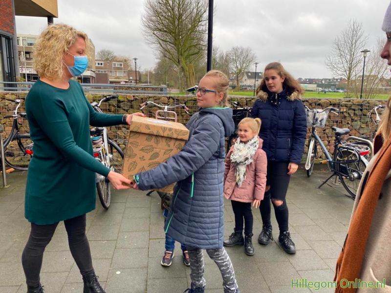 Vier leerlingen van basisschool De Giraf uit de groepen 1 en 2 en groep 8 boden de kaarten aan mevrouw van Saase van woonzorgcentrum HOZO, samen met de directeur van De Giraf Karen Flantua, Iza Eerkens en Erik Sjoers van Stichting dichterBLIJ. ‘Als school vinden wij het belangrijk dat onze leerlingen oog leren hebben voor andere mensen. Het wat voor iemand anders doen, even aandacht te hebben voor een ander door zelfs een klein gebaar, geven wij graag mee aan onze leerlingen, zeker in deze bijzondere periode.’