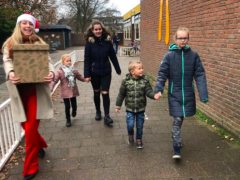 Trots liepen de jonge kleuters aan de hand van de achtste groepers mee door de wijk naar het woonzorgcentrum. ‘Niet alleen vandaag helpen de oudere kinderen de jongsten’, zegt Karen Flantua, ‘leren van elkaar vinden wij heel belangrijk, net zoals elkaar helpen.’. De actie sluit mooi aan bij de kernwaarden van school. Bewust leerlingen in contact brengen met de verscheidenheid van onze maatschappij en leren respectvol om te gaan met een ander.
