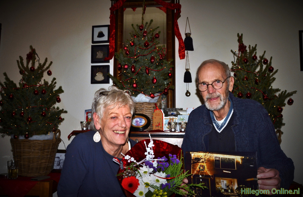De genomineerden, die net buiten de prijzen vielen, werden gisteren ook verrast door een fotograaf van Hillegom Online. Zij kregen een afgedrukte foto van hun versierde huis van Foto de Geus en een bosbloemen van Het Plantenhuis.