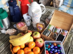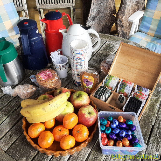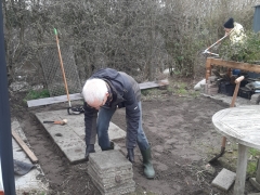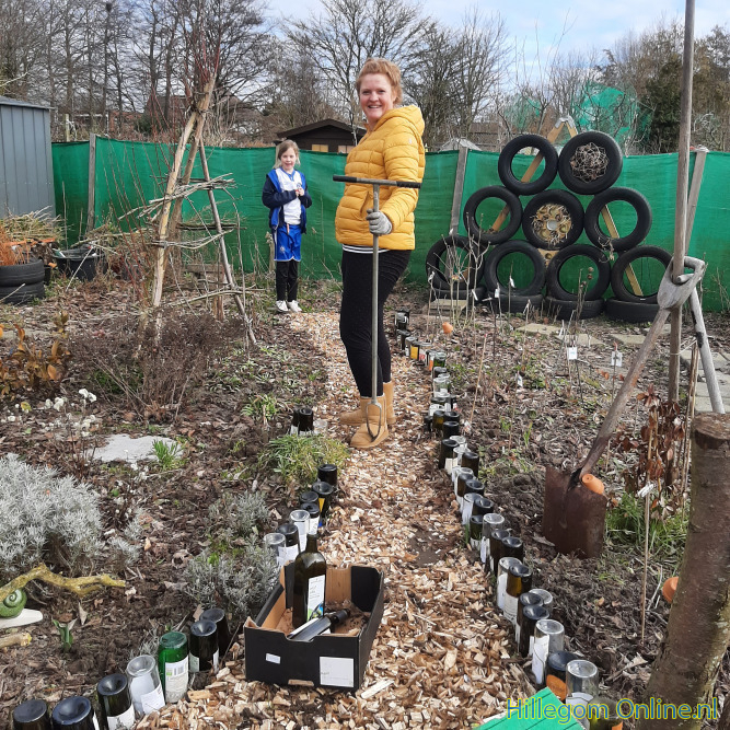 Tijdens de tuinwerkdag is de groep, vanwege Corona opgesplitst in twee shifts, flink aan het werk gegaan. In de Moestuin werden graspollen verwijderd, zand gekruid, moestuinbedden ingedeeld en planten in de kas verzorgd. Terwijl op De Belevingstuin dakpannen zijn ingegraven voor de Brandnetels. Met opgespaarde wijnflessen een borderrand langs een pad gemaakt is en de heg flink terug gesnoeid. Ook al was het werken op gepaste afstand; het was een heel geslaagde dag van klussen, buiten zijn en vooral elkaar ontmoeten en samen zijn.