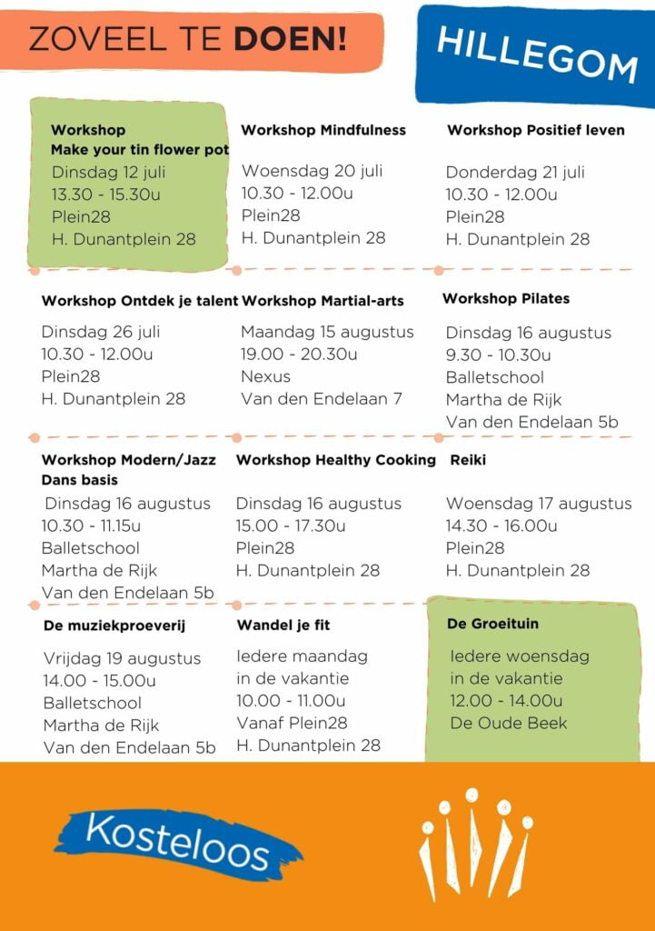 Hillegom – De maand augustus is van start gegaan. Tijd om op vakantie te gaan en leuke dingen te doen, maar dit geldt niet voor iedereen. Ook voor mensen die niet op vakantie gaan en tijdens de vakantie niet stil willen zitten zijn er diverse activiteiten en workshops te volgen. Doe mee met de Summerschool!