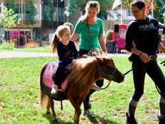 Hillegom – In de hoftuin konden kinderen zaterdagmiddag een rondje rijden op de pony’s van Ponypark Lisserbroek.