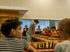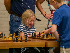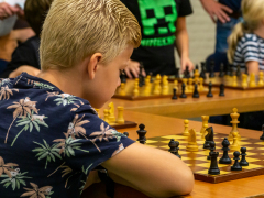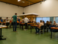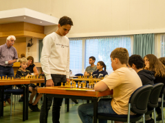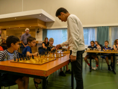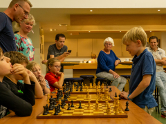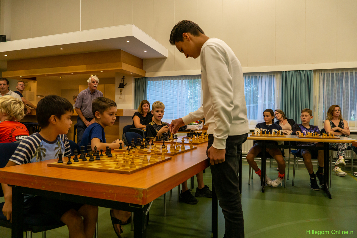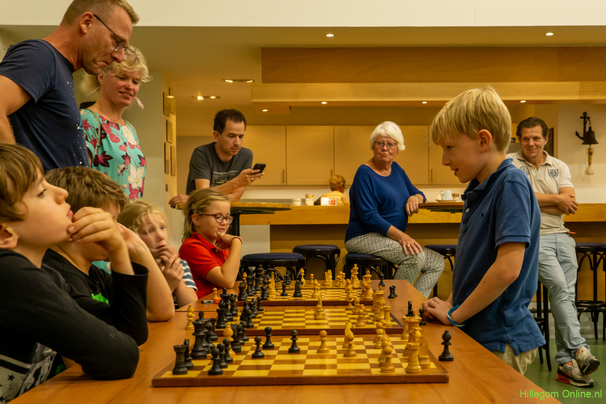 met Schaakclub De Uil een groot simultaantoernooi. Op maandag 12 september hoorde je de hersenen flink kraken.