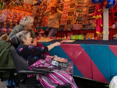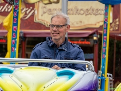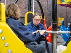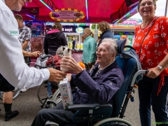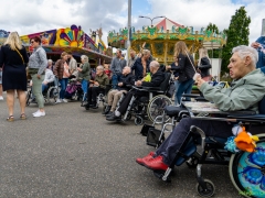 Hillegom – Voordat de kermis op donderdagmiddag open ging was er eerst een uurtje voor de ouderen en mensen met een beperking. Ze mochten overal gratis is en kregen ook nog een oliebol, suikerspin en een knuffel. De snelheid van de attracties was aangepast net als het volume van de muziek.