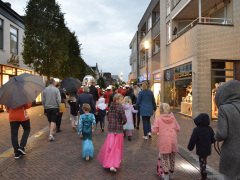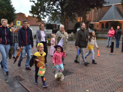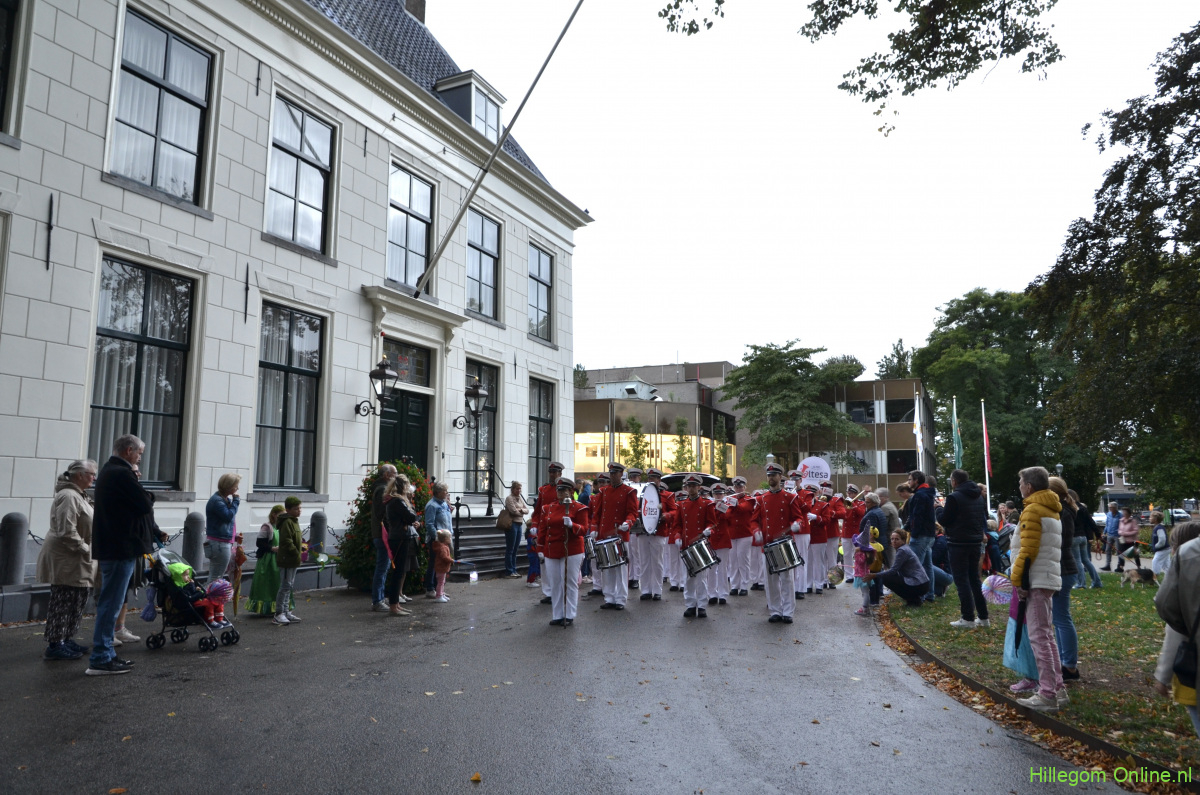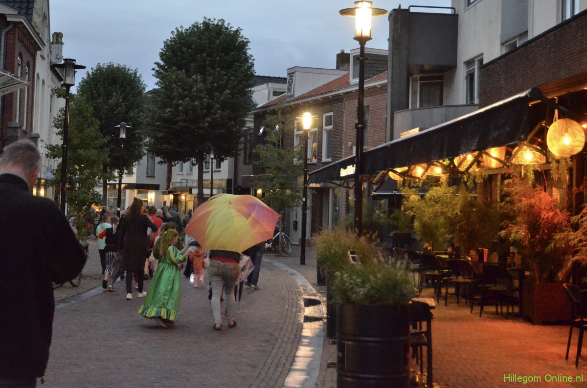 Hillegom – Op donderdagavond verzamelde een bonte stoet verklede kinderen met lampionnen zich bij het gemeentehuis. Daar klonk muziek. Even later kwam het muziekkorps tevoorschijn en iedereen sloot aan bij de optocht. De stoet trok door het dorp, terwijl het donkerder en donkerder werd. De lichtjes van de lampionnen waren daardoor steeds beter te zien.