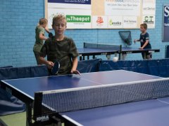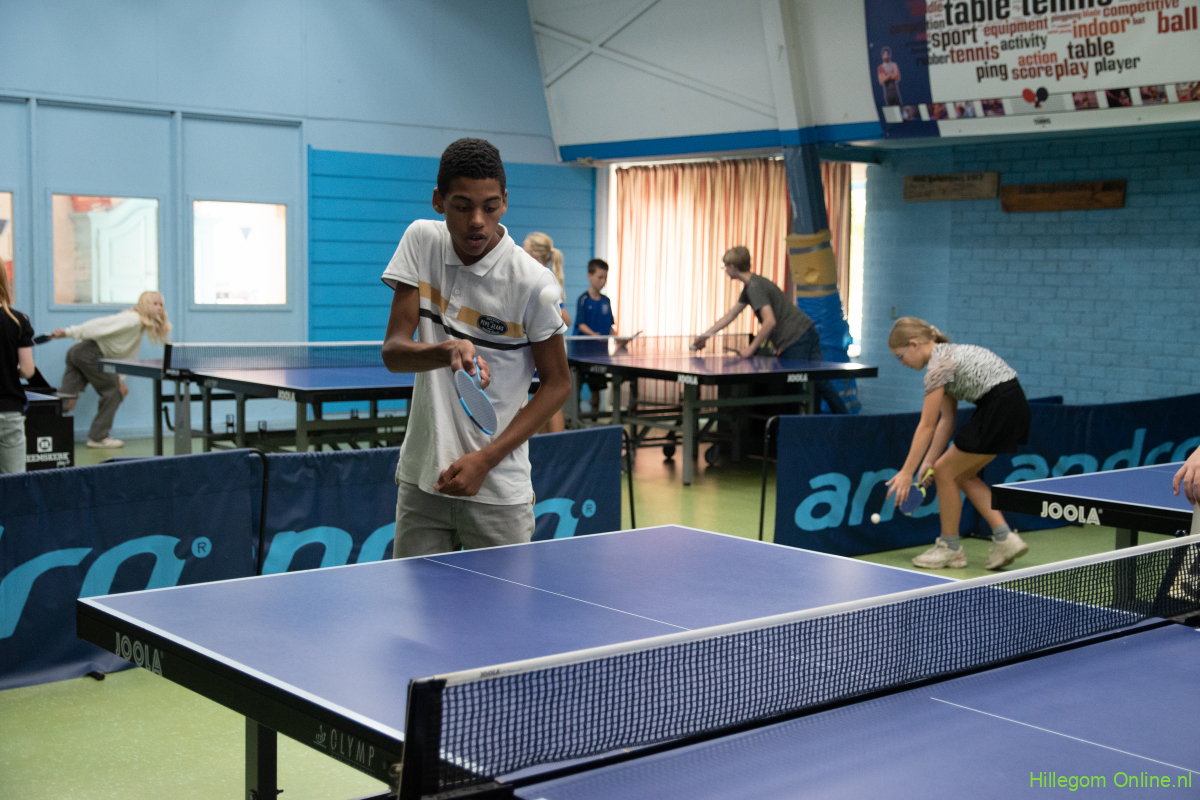 Hillegom – Woensdagmiddag vond er bij SDO Hillegom het tafeltennistoernooi plaats. In verschillende klassen speelden de kinderen tegen elkaar. Voor de jongste kinderen was er pushpong. Hierbij moest de bal onder het net geschoven worden om zo de kegels omver te gooien. De oudere kinderen speelden een normaal tafeltennistoernooi.