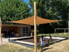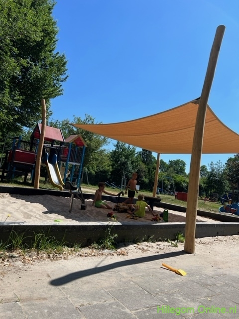 Maar dit klimtoestel is niet de enige vernieuwing in de speeltuin. Nu er steeds meer hete dagen zijn, is er namelijk extra behoefte aan schaduw. Die was in de zandbak helemaal nog niet te vinden. Nu hang er een schaduwdoek over een groot deel van de bak, zodat het zand en de kinderen niet oververhit raken.