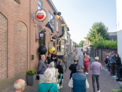 De opening begon buiten aan de Molenstraat. Tussen de langsrazende fietsers stonden de belangstellende. Na een paar korte toespraakjes werd als openingshandeling een lint doorgezaagd. Binnen werd iedereen uitgenodigd voor een drankje om de opening te vieren. Aan Van Erk de eer om het eerste biertje te tappen.