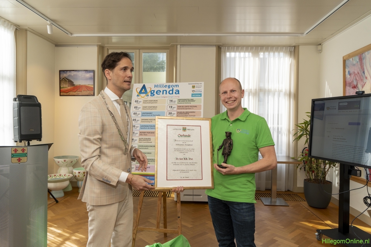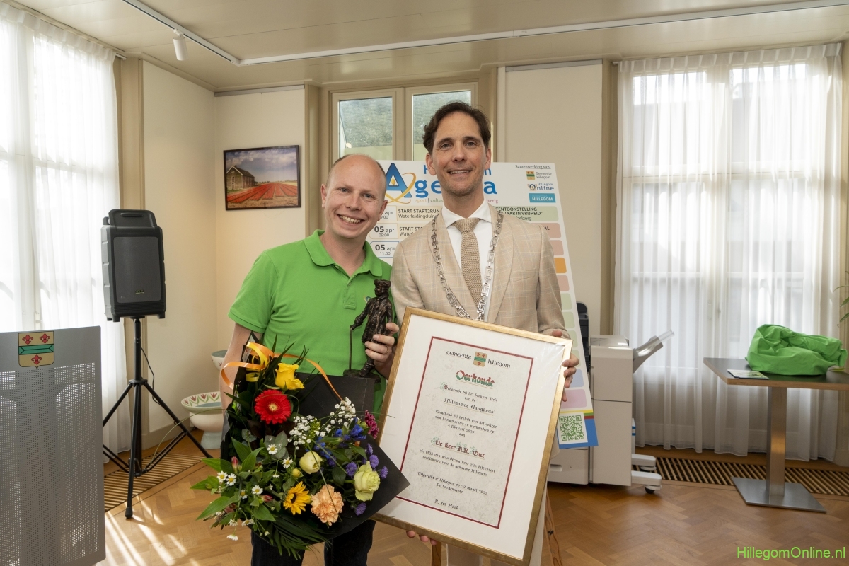 Hillegom – Barry Out is verrast met een gemeentelijke onderscheiding voor zijn vele vrijwilligerswerk. Afgelopen zaterdag was er de lancering van de Hillegom Agenda, samenwerking tussen Hillegom Online, Gemeente Hillegom en Ondernemend Hillegom, waarna burgemeester Ter Hark het woord tot Barry Out richtte.