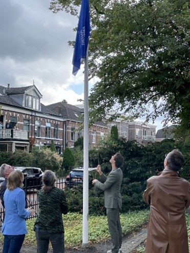 Burgemeester Roberto Ter Hark verrichtte om half elf de officiële opening bij Kwekerij Veelzorg aan de Stationsweg, het onderkomen van Stichting Vrienden van Oud Hillegom. Samen met Vrienden-voorzitter Wilbert Koops, hees hij de vlag van Open Monumentendag, die dit jaar als thema had: Erfgoed en architectuur.