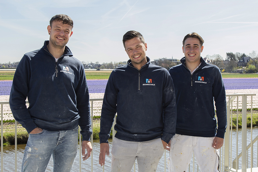 Met zijn schilders- en stucbedrijf is Björn een speler van formaat geworden. Onlangs zette hij een grachtenpand in Amsterdam opnieuw in de verf, met de monumentencommissie als kritische jury. En dat ging goed, iedereen was tevreden: “Hoe gaaf is het dat we van een simpele tussenwoninkje nu complete miljoenenpanden staan te doen. Dat is toch kicken?!” Maar de specialisatie van Maarschalk Schilderwerk is toch wel de nieuwbouw. Met zijn team en betrouwbare onderaannemers, kan hij hele woningen afwerken. “Kozijnen schilderen, plafonds stucen, muren behangen; het is niet één mannetje wat alles doet, het zijn allemaal specialisten. Maar het mooie is dat de klant één aanspreekpunt heeft. We leveren kwaliteit en weten wat we van elkaar kunnen verwachten, dat scheelt een hoop gezeur.”