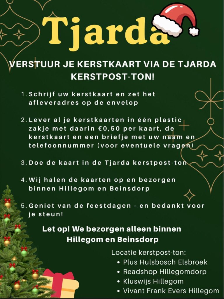 Voor deze bezorgactie wordt een bedrage van €0,50 per kaart gevraagd. Bij het inleveren van de kaart dient er contant en gepast te worden betaald. Voor een snelle afhandeling kunt u de kaarten verpakken in een plastic zakje met daarin een envelop voorzien van naam, adres en telefoonnummer én het gepaste geld. Heb je vragen over de actie? Neem dan contact op via telefoon 06-40270938 of per email via kerstkaarten@tjardahillegom.nl