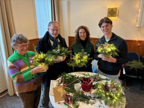 - een groepje leerlingen gaat kerststukjes maken met ouderen Bij Heem om 10.30