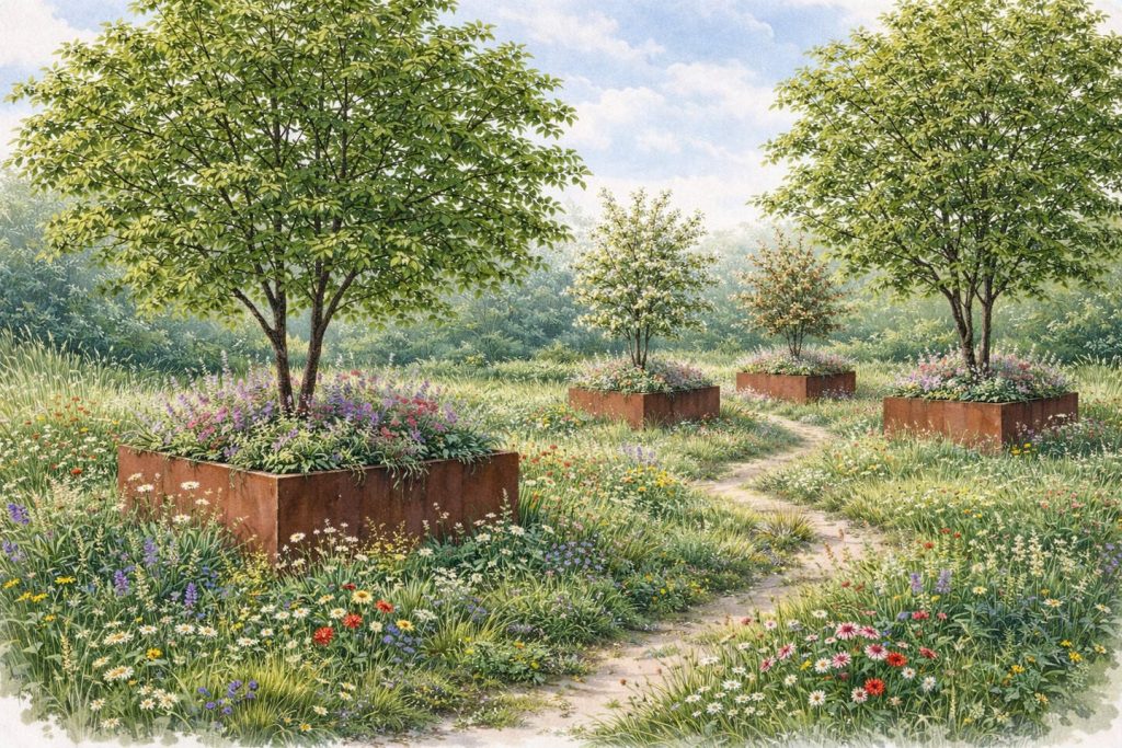 De illustratie hierboven toont hoe een wandelend bos er ongeveer uitziet. Het bos zal bestaan uit diverse inheemse boomsoorten en krijgt een sterke ecologische functie, met ruimte voor vogels, insecten en andere dieren. Arjen van der Put erkent dat het project ook promotie is voor zijn hoveniersbedrijf, maar benadrukt dat dit juist garandeert dat het terrein er verzorgd en aantrekkelijk uit blijft zien. In een reactie aan Hillegom Online laat Van der Put weten dat de eerste werkzaamheden in februari starten en de oplevering, als alles meezit, eind maart zal zijn.