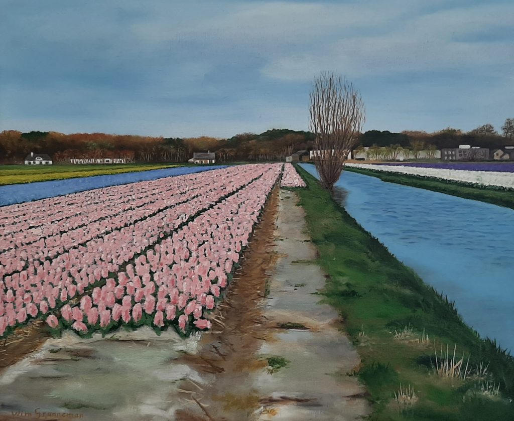 De kleurrijke bloembollenvelden van de Bollenstreek vormen al eeuwenlang een iconisch landschap. De Hillegomse kunstenaar Wim Granneman brengt dit unieke erfgoed tot leven in een bijzondere serie handgemaakte olieverfschilderijen die hij van 6 maart tot en met 18 mei 2026 exposeert in de bibliotheek van Hillegom. Zijn realistische werken tonen authentieke beelden van de bloeiende velden van de Bollenstreek.