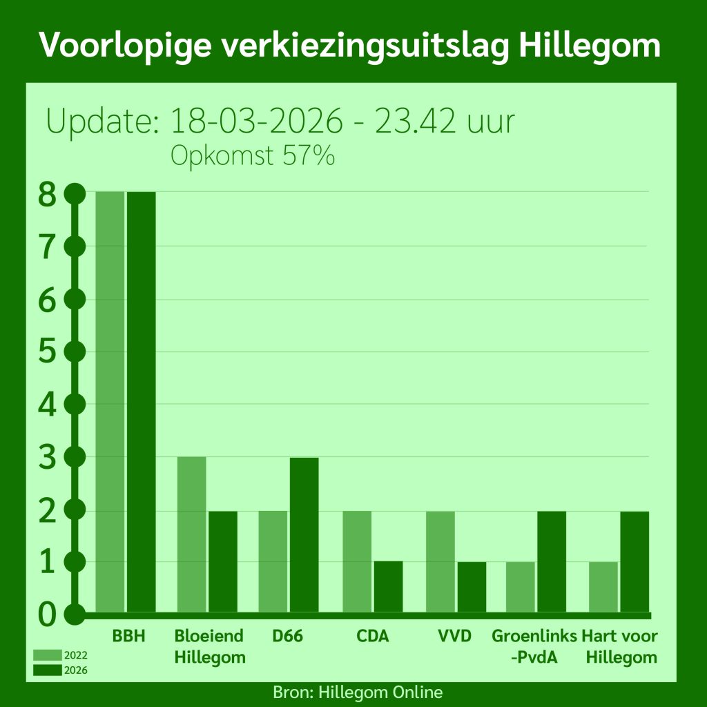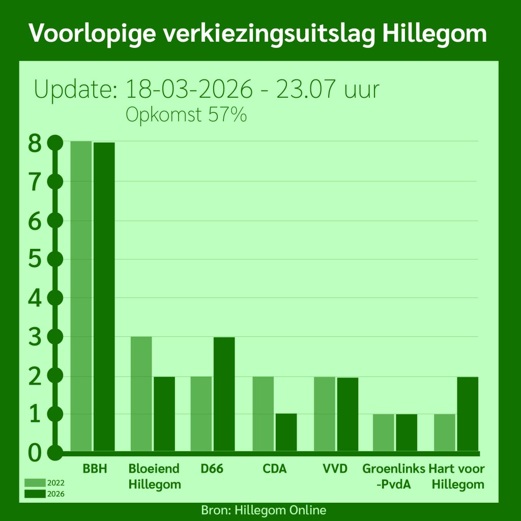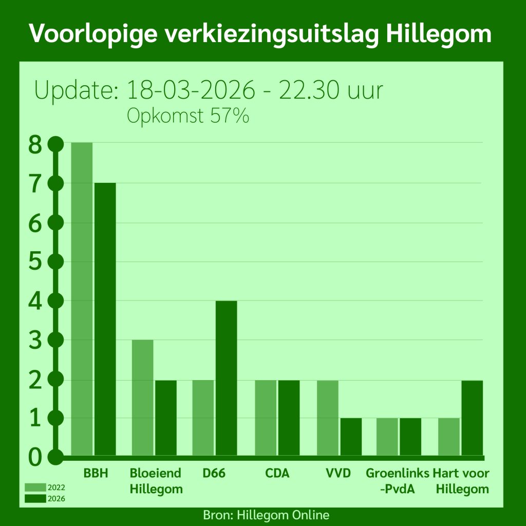 Hillegom – De Hillegommers mochten vandaag naar de stembus om te kiezen voor de gemeenteraad. In deze liveblog houden we u op de hoogte van de uitslagen en ander nieuws tijdens de uitslagenavond.
