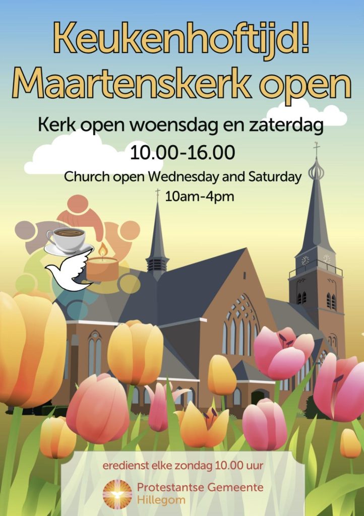 De Maartenskerk in Hillegom is tijdens de Keukenhof-periode elke woensdag en zaterdag van 10.00 tot 16.00 uur geopend voor iedereen. De extra openstellingen vinden plaats van woensdag 25 maart tot en met zaterdag 9 mei. Op die dag vindt ook het gezellige Montmartre plaats op het Kerkplein, bij de pomp en een gedeelte van de Hoofdstraat.
