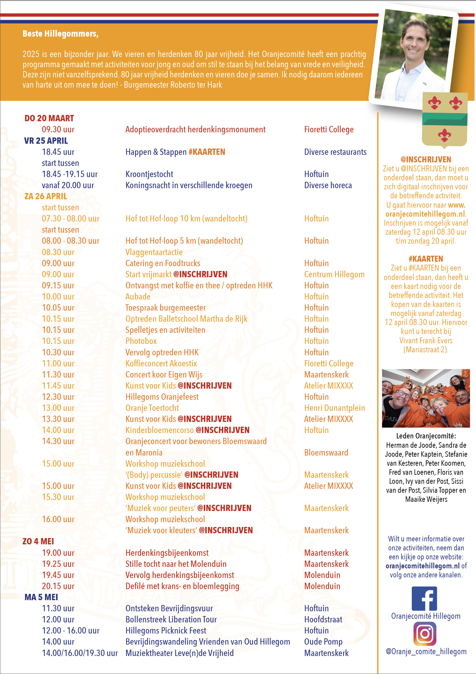 Koningsdag vindt dit jaar plaats op zaterdag 26 april, aangezien 27 april op een zondag valt. Bekijk hier het gehele programma;