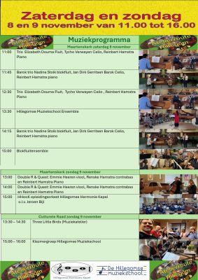 In de Maartenskerk en bij de Kulturele Raad staat een muziekprogramma dat wordt verzorgd door de Hillegomse