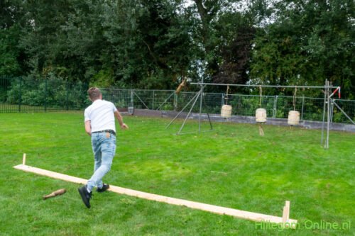 Drie tonnen bungelden op zaterdagochtend aan de stellage bij De Vosse. Bijna 150 deelnemers kwamen...