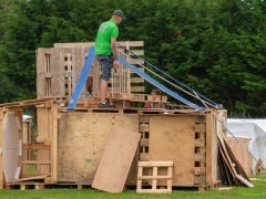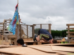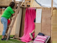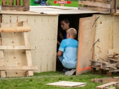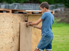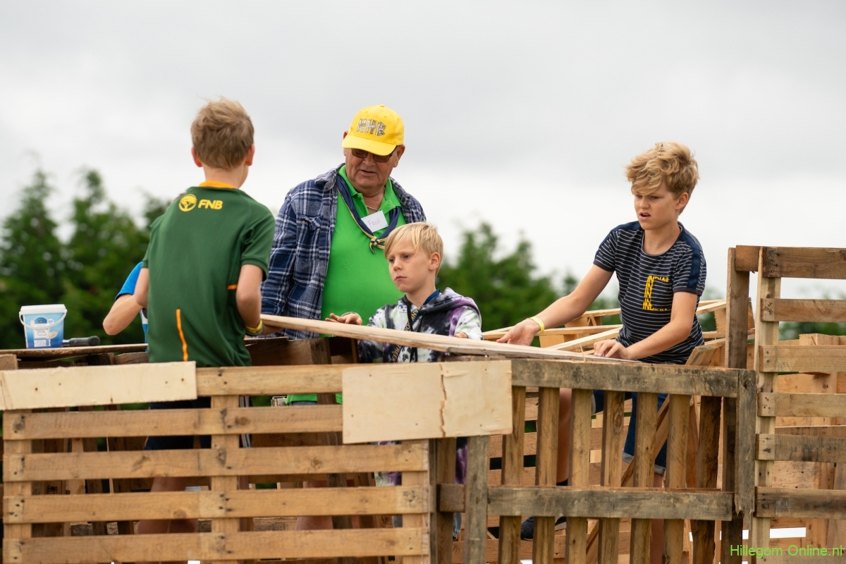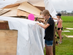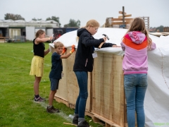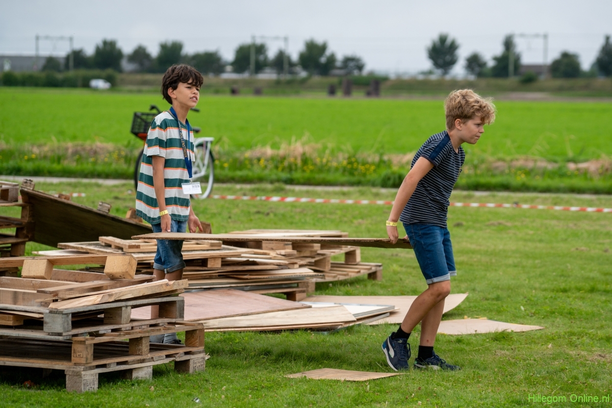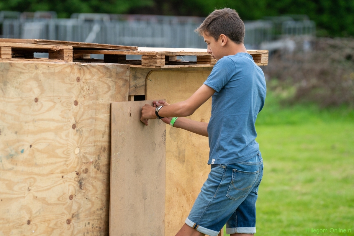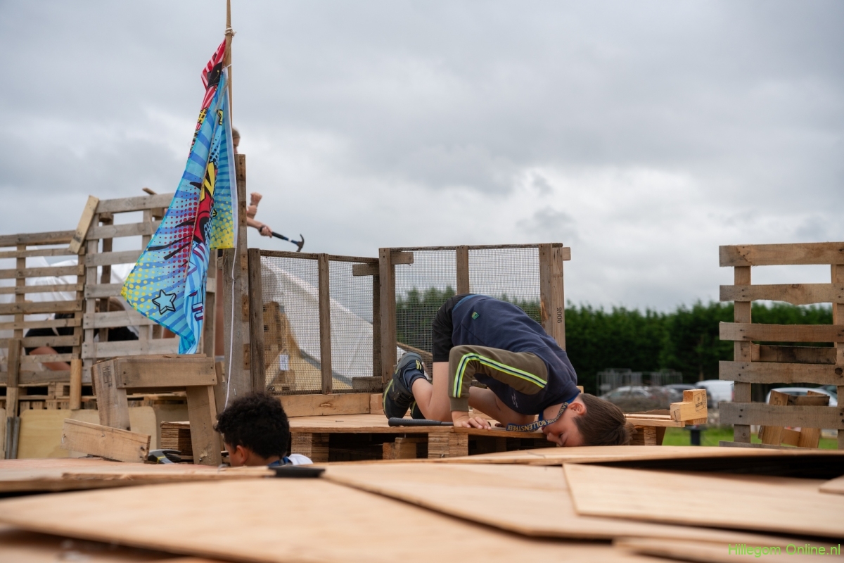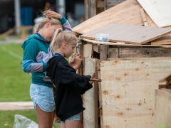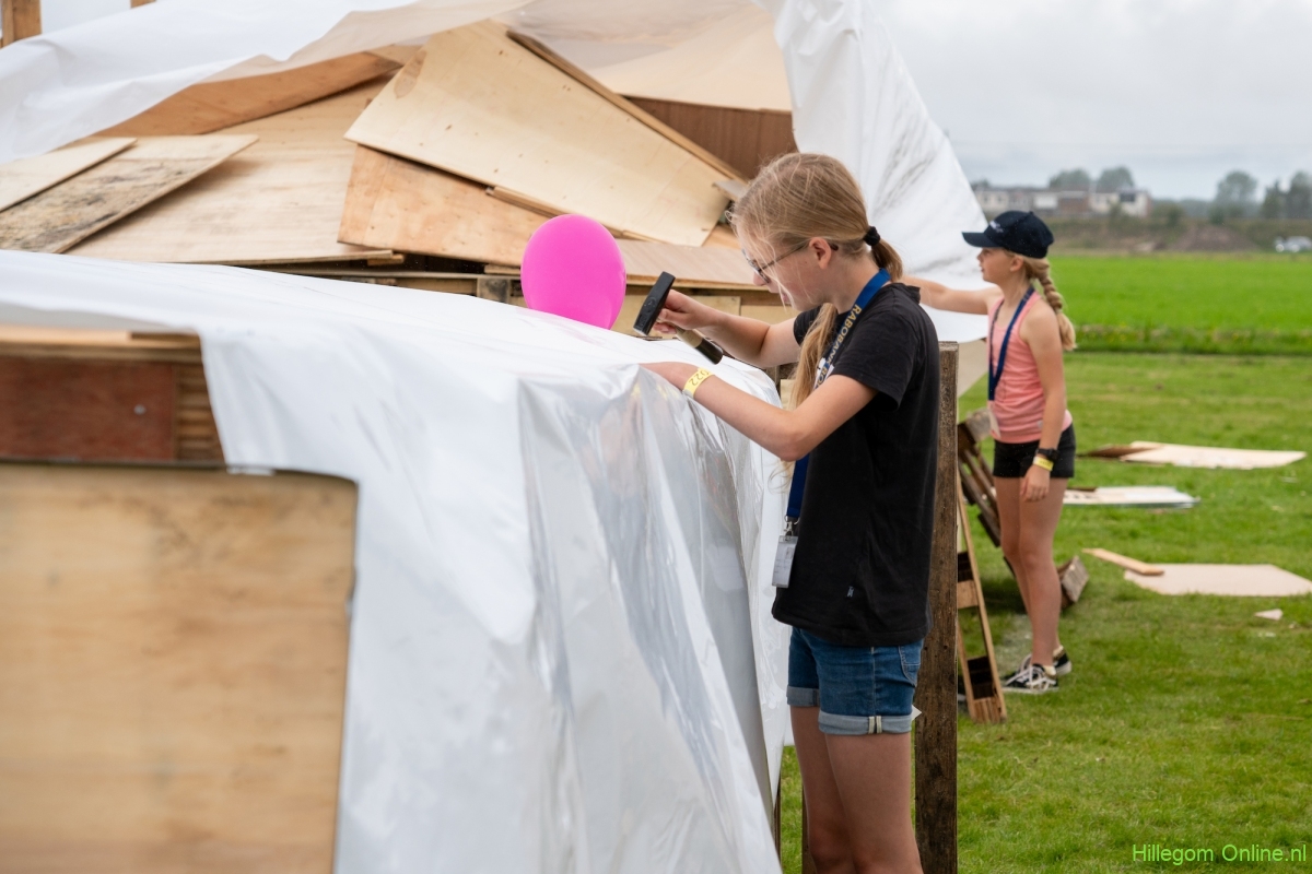 Hillegom – De laatste dag om de hutten waterdicht te maken is aangebroken. Het ene team is nog druk bezig om extra verdiepingen aan de hut toe te voegen, en andere teams proberen de hut zo waterdicht mogelijk te maken. Ze hebben alleen vandaag nog, want van dinsdag op woensdag nacht slapen ze allemaal in hun tent.