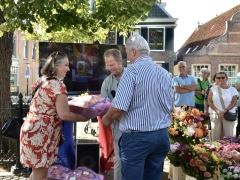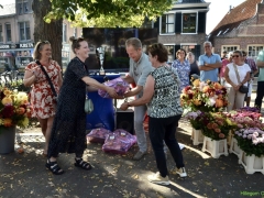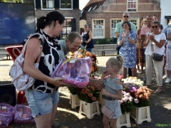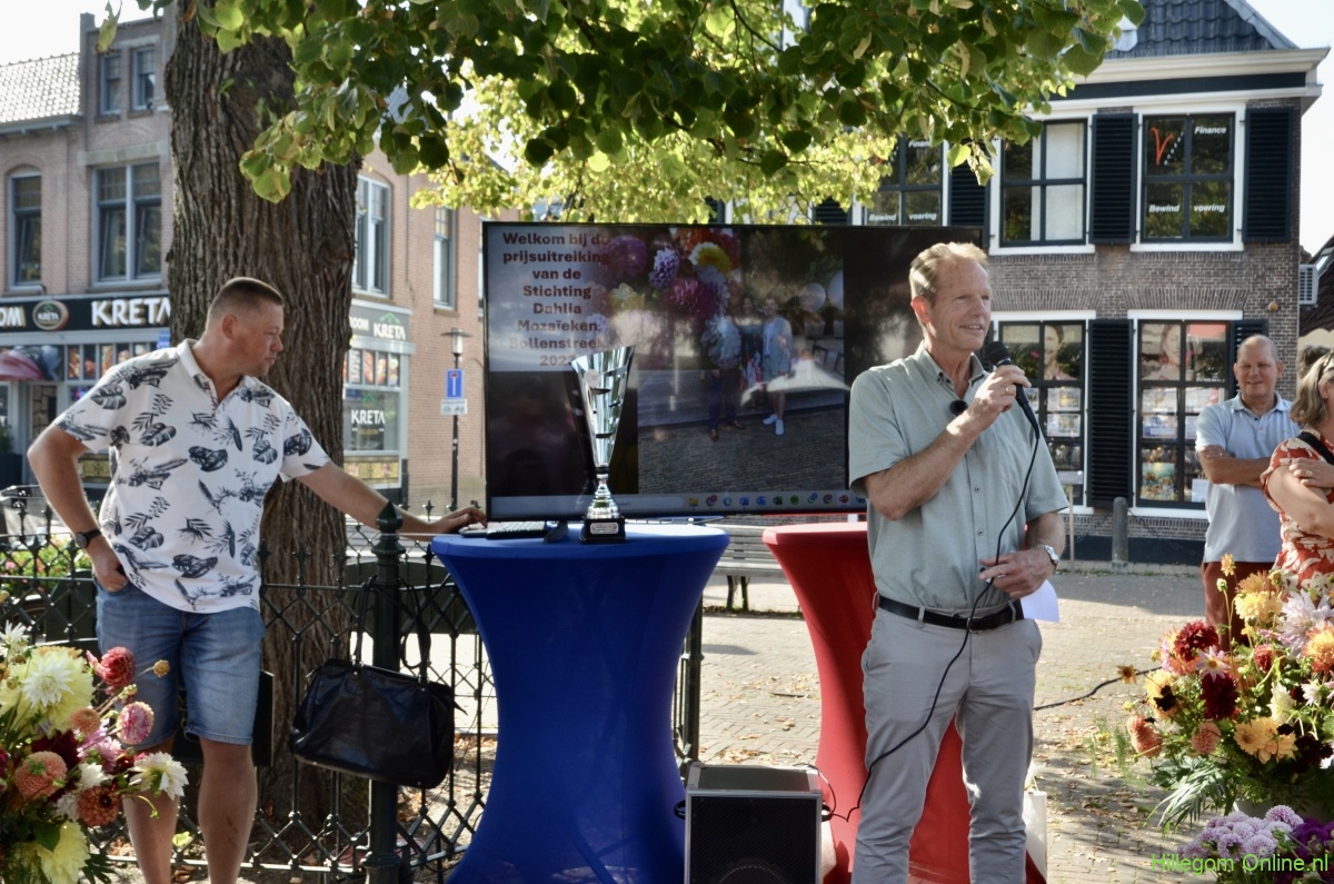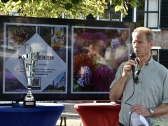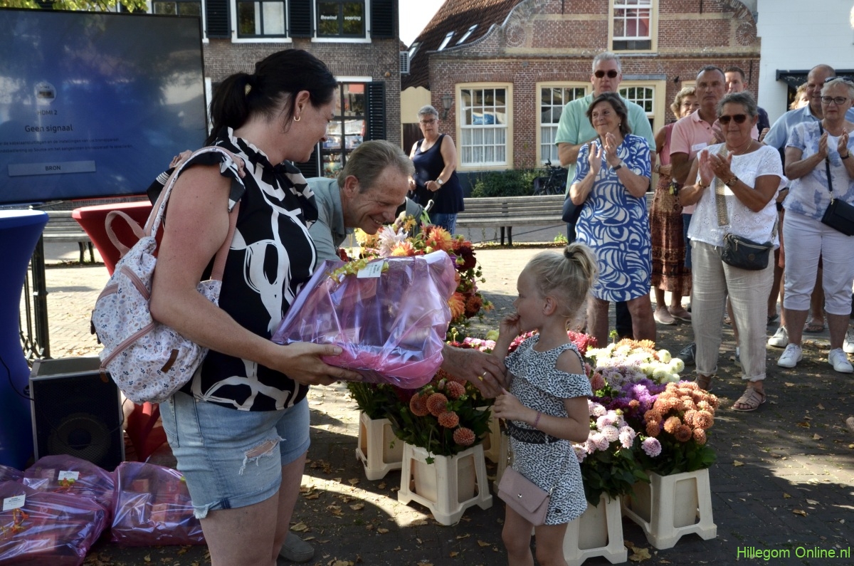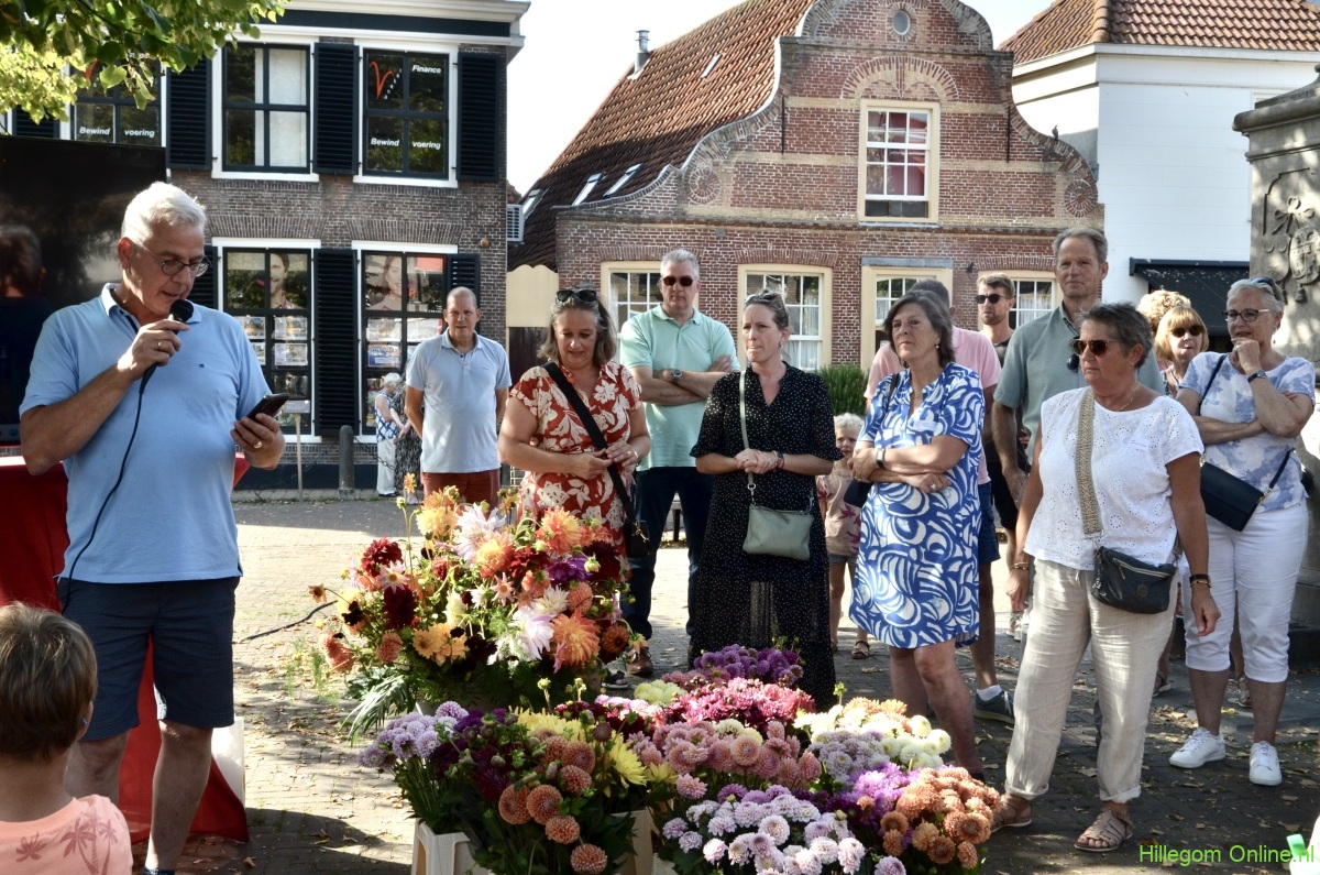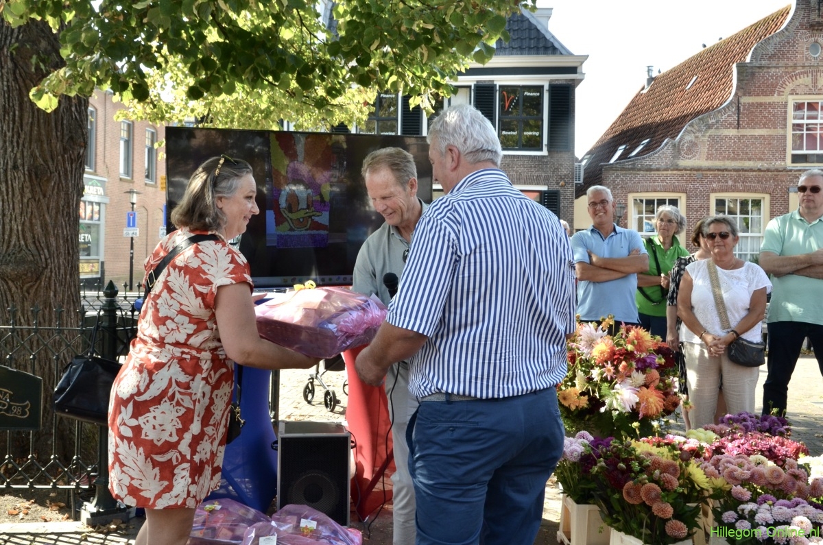 Hillegom – Op zaterdag 9 september om 16.00 uur was de prijsuitreiking van de Dahlia Mozaïeken bij de pomp in Hillegom. Wat zeven jaar geleden begon met vier dahlia Mozaïeken is dit jaar uitgegroeid tot een evenement met wel tweeënnegentig mozaïeken. Vanaf woensdag werd er dus druk gestoken In de regio. De jury heeft vandaag alle mozaïeken bezocht. Er waren prijzen voor Hillegom. Voor Lisse en voor de regio. In Hillegom was de eerste prijs voor Bloembinderij van der Post.