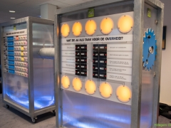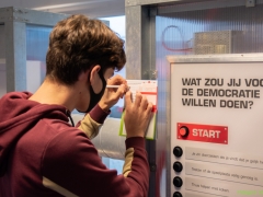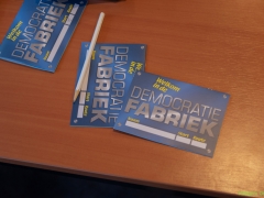 Docent maatschappijleer Ashanti Haverkamp‘: De Democratiefabriek’ is een interactieve tentoonstelling waarin de leerlingen met elkaar democratie gaan onderzoeken en oefenen. Grote thema’s zoals conflicten, macht, vrijheid, pesten, gelijkheid en democratie komen aan de orde. Leerlingen onderzoeken welke waarden en idealen ze hebben. ‘En veel leuker dan gewoon les!’, roep een leerling vanachter een stellage over pesten. Met de conclusie ‘Leerzaam en leuk’ zijn Ashanti en haar leerling het samen helemaal eens.