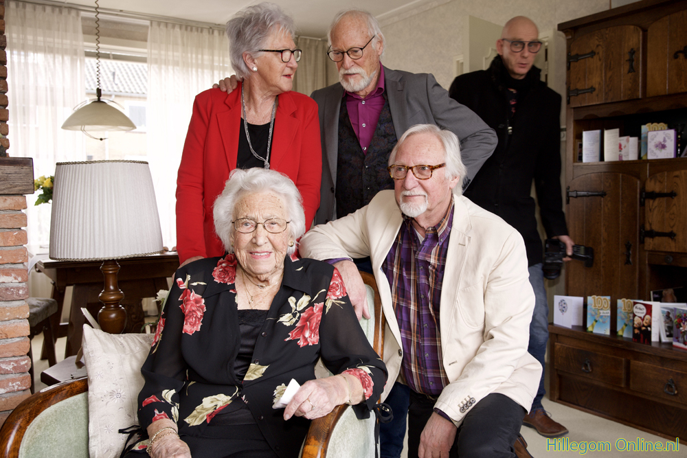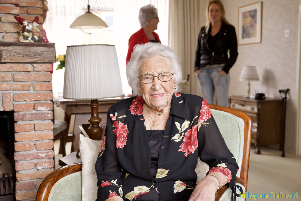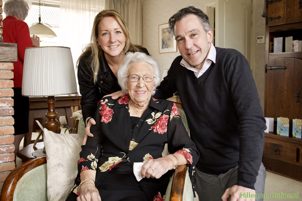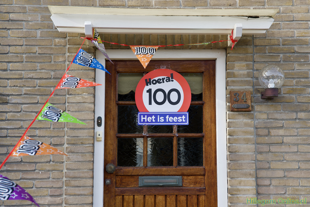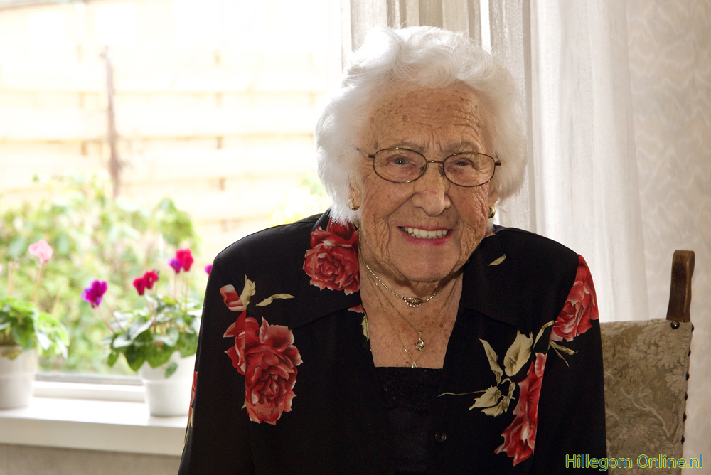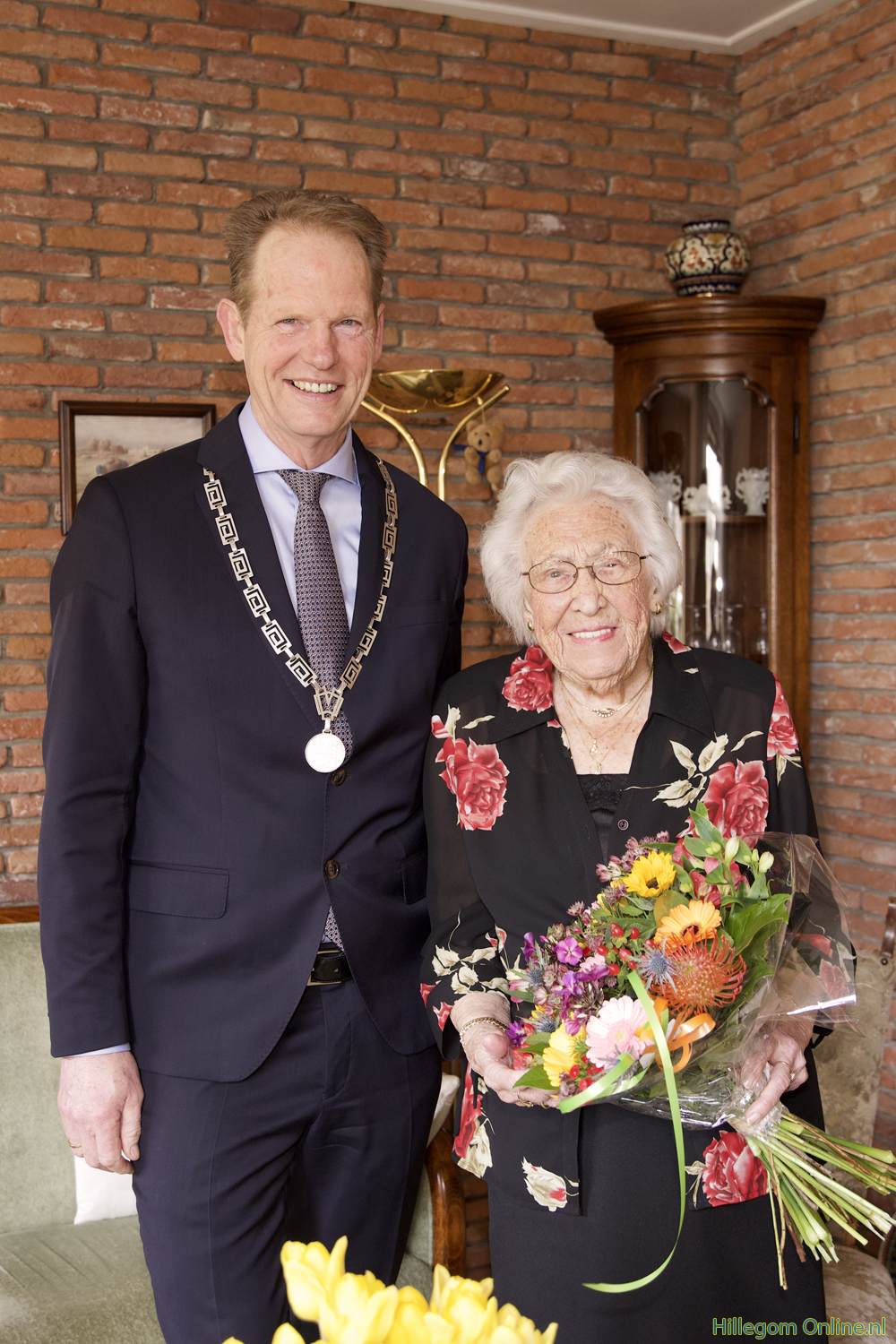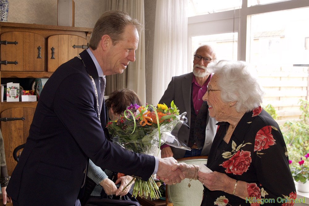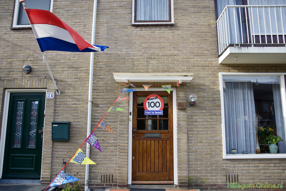 Hillegom – Op 13 februari werd mevr. van Markus-Rijnhart 100 jaar. In de gehele straat hingen de vlaggen uit en de woonkamer lag vol met bloemen en felicitatiekaarten. Burgemeester Arie van Erk kwam samen met zijn vrouw langs om de 100-jarige te feliciteren.
